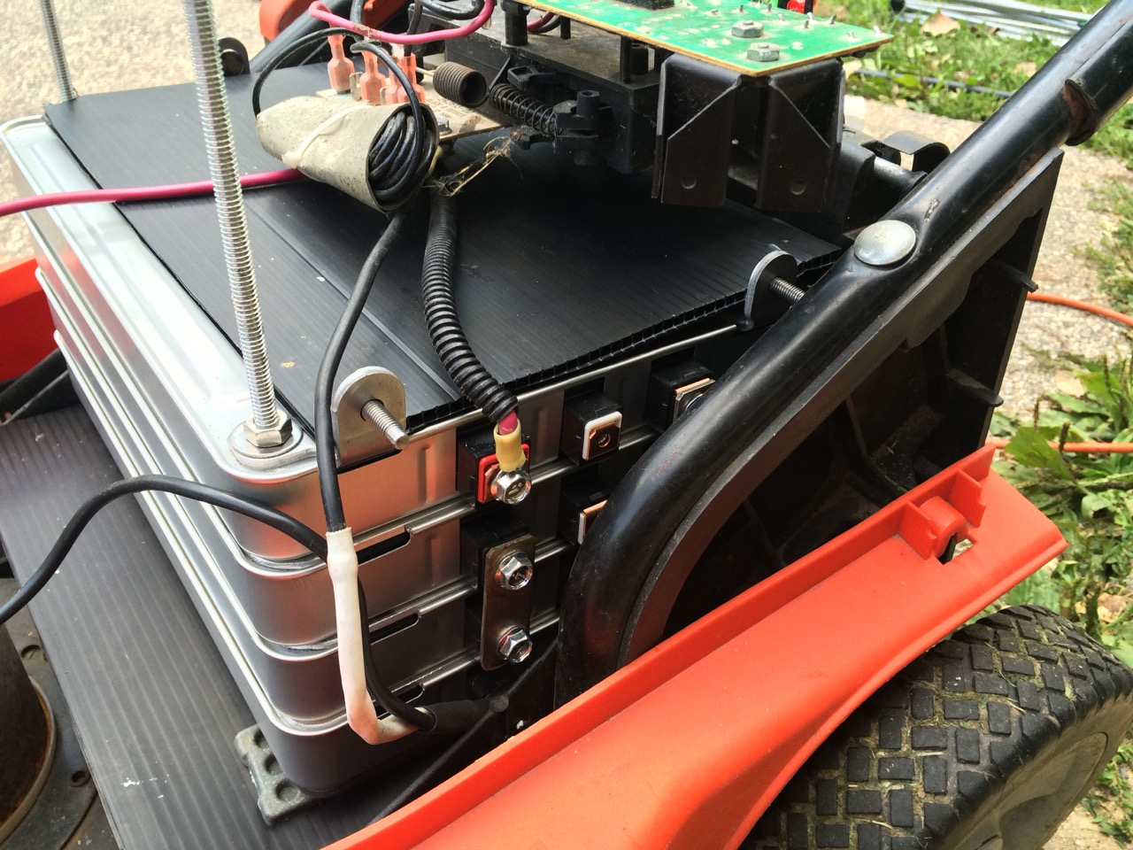 PPS: Out of pocket cost for this project was about ten bucks for some aluminum from the hardware store. While I wouldn’t necessarily encourage people to spend several hundred dollars on lithium batteries to upgrade mowers, this was built almost entirely with materials I already had on hand! Use what ya got!