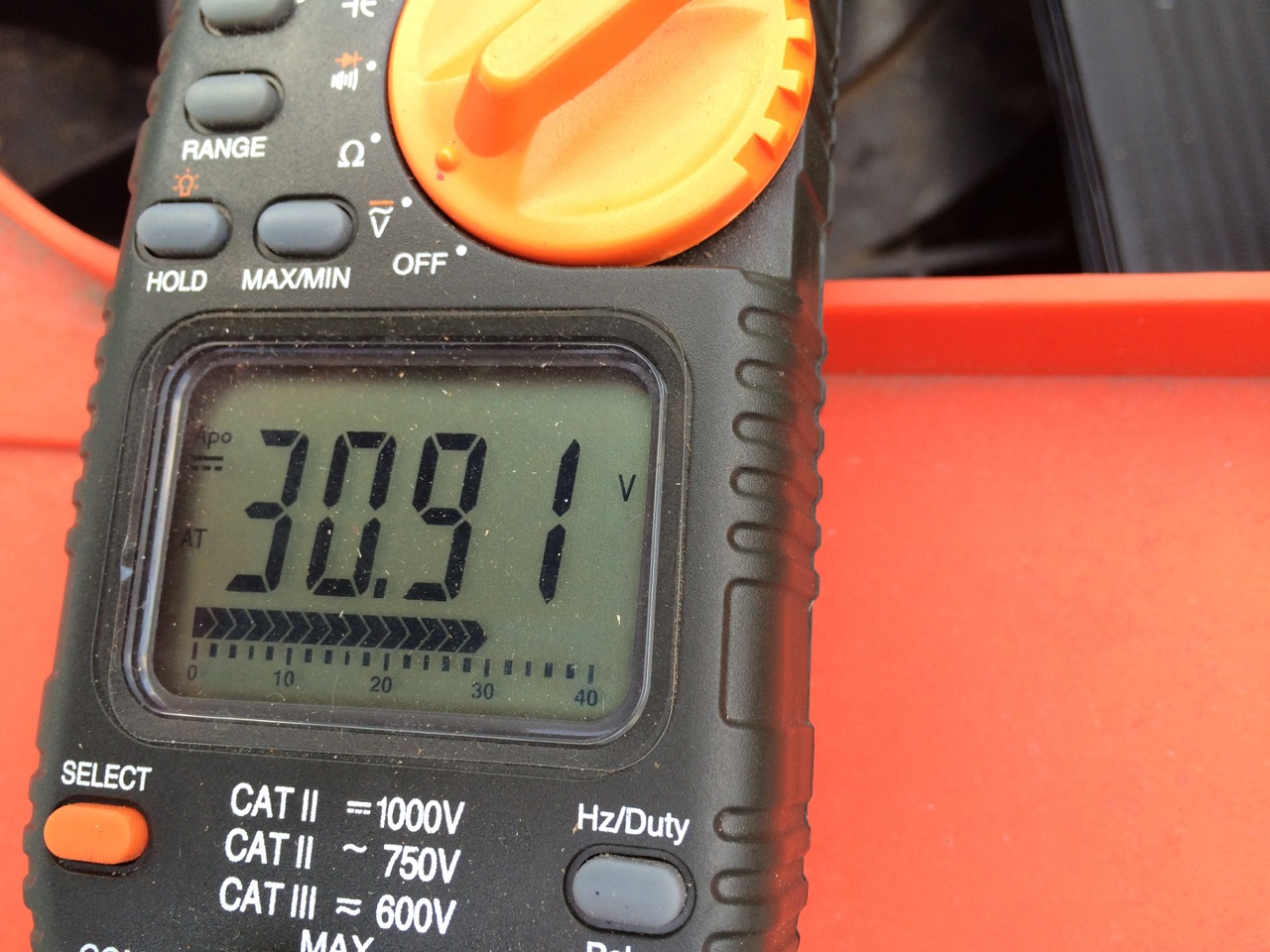 I’d also like to have a digital volt meter right on the mower. Perhaps I can order a small, inexpensive panel meter, cut a hole right in the cover, and mount it there.