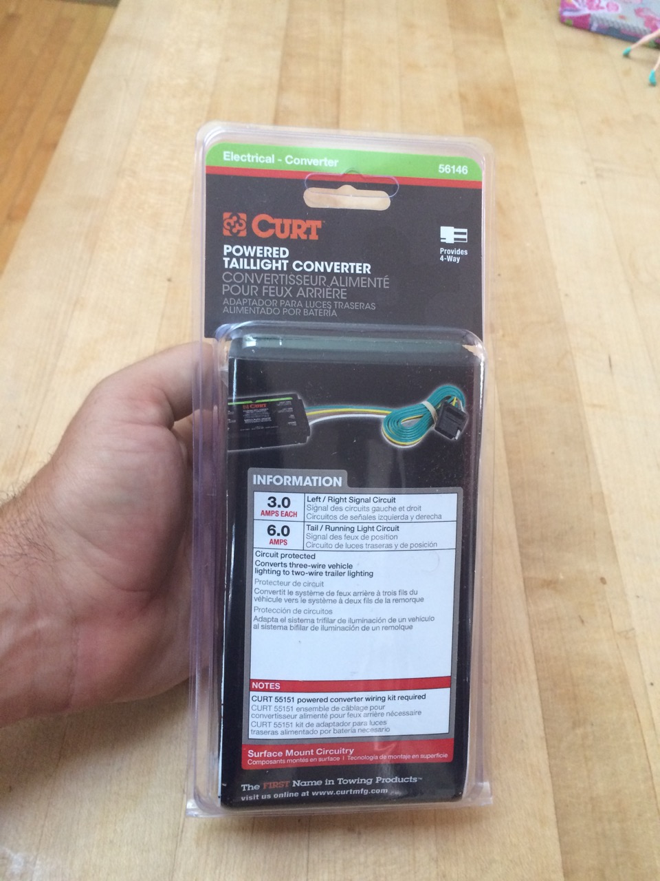 I ordered a Curt 56146, (https://amzn.to/2DqU6VB) which was a little more than twenty dollars on Amazon.com. It also required a separate wiring kit, which is simply another piece of wire and a fuse. I already had those materials around, so I didn’t even bother to order the Curt 55151 kit that would match. (https://amzn.to/2xJpHvA)