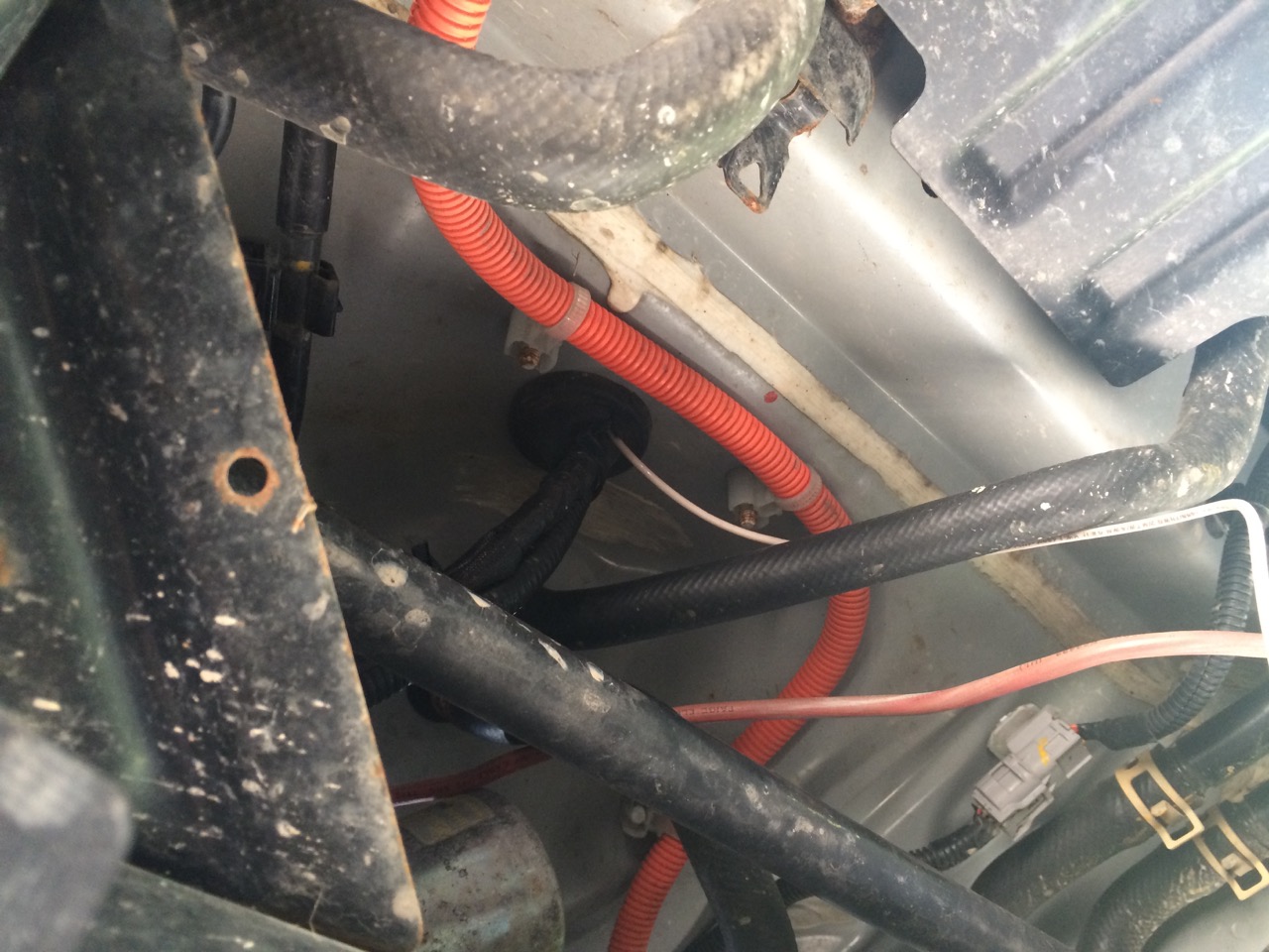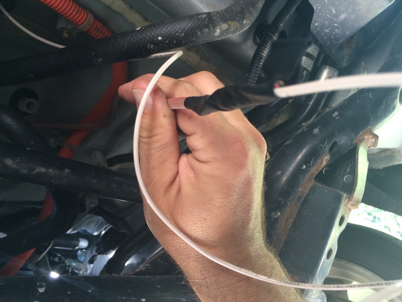 Under the car, I pulled through the extra wire.