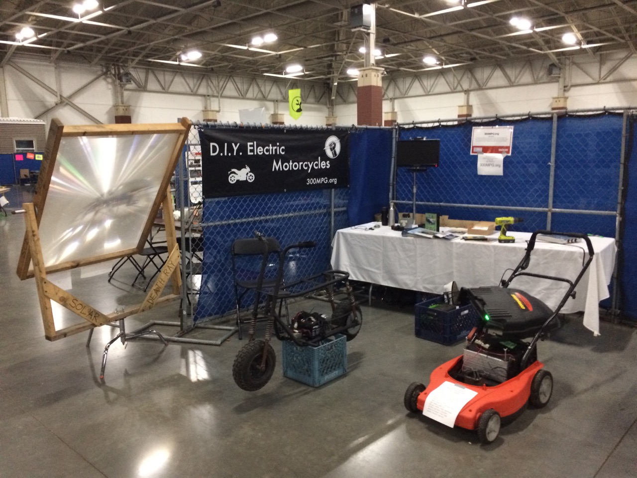 This past weekend, I presented at Maker Faire Milwaukee, showing off an electric lawn mower, an electric mini-bike, and Solar Death Ray. But probably the best part was helping hundreds of kids have fun LITERALLY coloring on the floor!