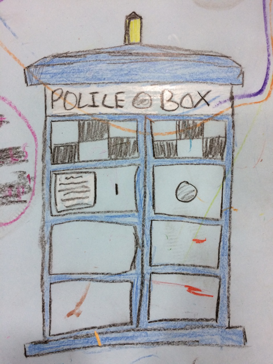 The second day’s doodle was a little different. I noticed a few people were trying to promote themselves on social media by writing down hash-tags and snapchat handles. There was also a few more Doctor Who references (A Dalek army was right on the other side from the Doodle!) and there were some very nice doodles done by talented adults. I think I saw more adults doodling on the second day than on the first. Nowhere did the exhibit specifically say that adults COULD or COULDN’T participate. However, we tend to think of coloring with crayons as a children’s activity. Part of why I titled this project as a “Doodle” was to imply that neither what was drawn or the artist’s skill level was important; just start drawing!