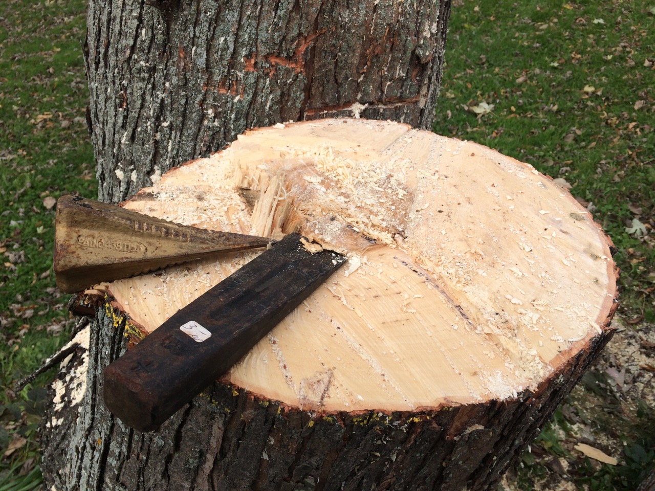 Once I was finally ready, a few whacks with the sledge hammer pushed the tree right over. Now, I just gotta cut it all up into firewood.