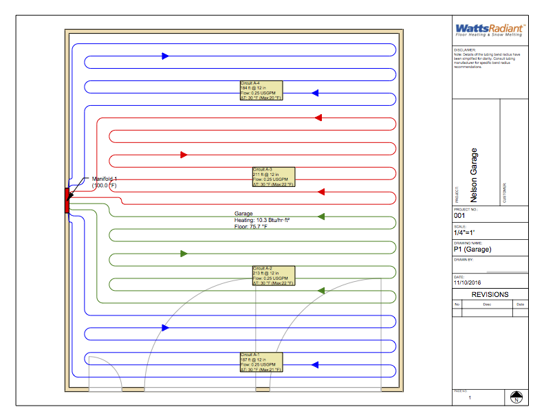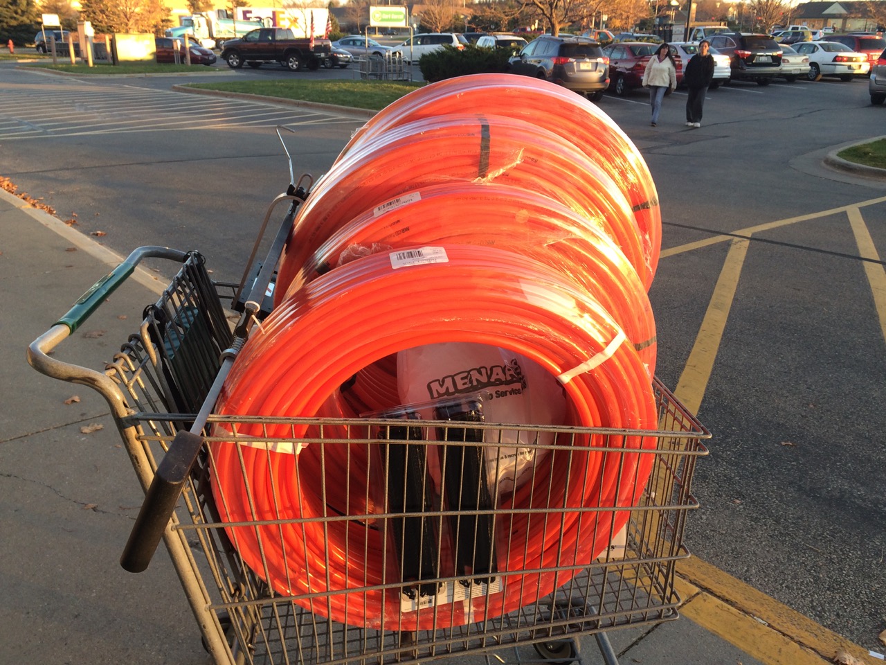 So, when I was done with work Friday, I headed to the big box home improvement store to get my materials. I purchased four rolls of oxygen-barrier Pex tubing of the 1/2 inch variety. Three of the rolls were 250′ long, and the last was 300′ feet. I specifically got those sizes because I had run the LoopCAD software to design the layout. Using four loops kept the loops shorter on average. Only one loop exceeded 250′. The spacing for the system is 10 inches between each section of tubing.