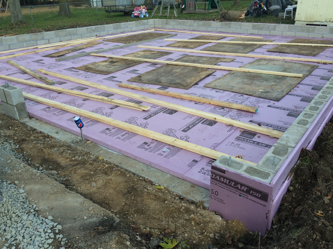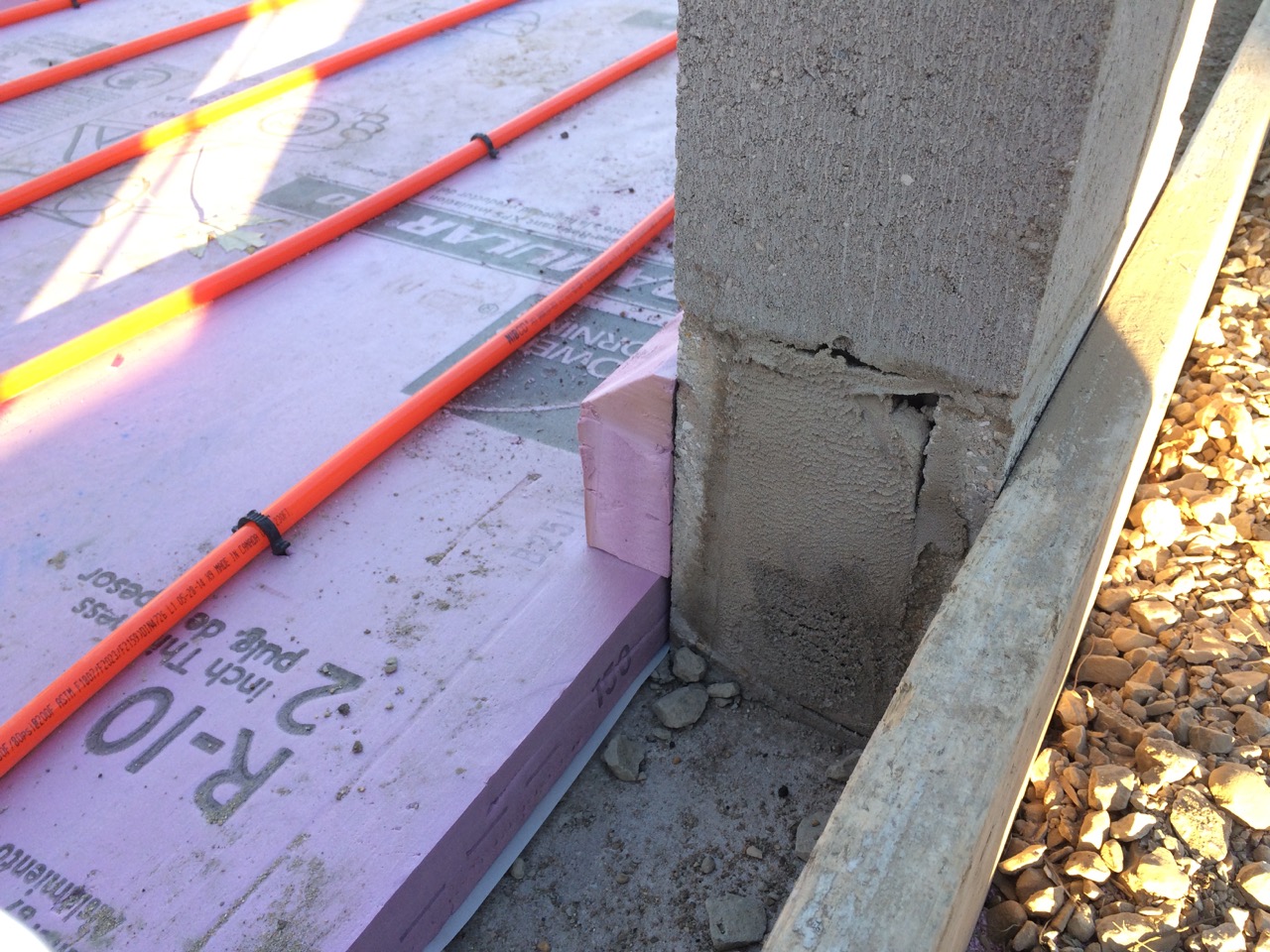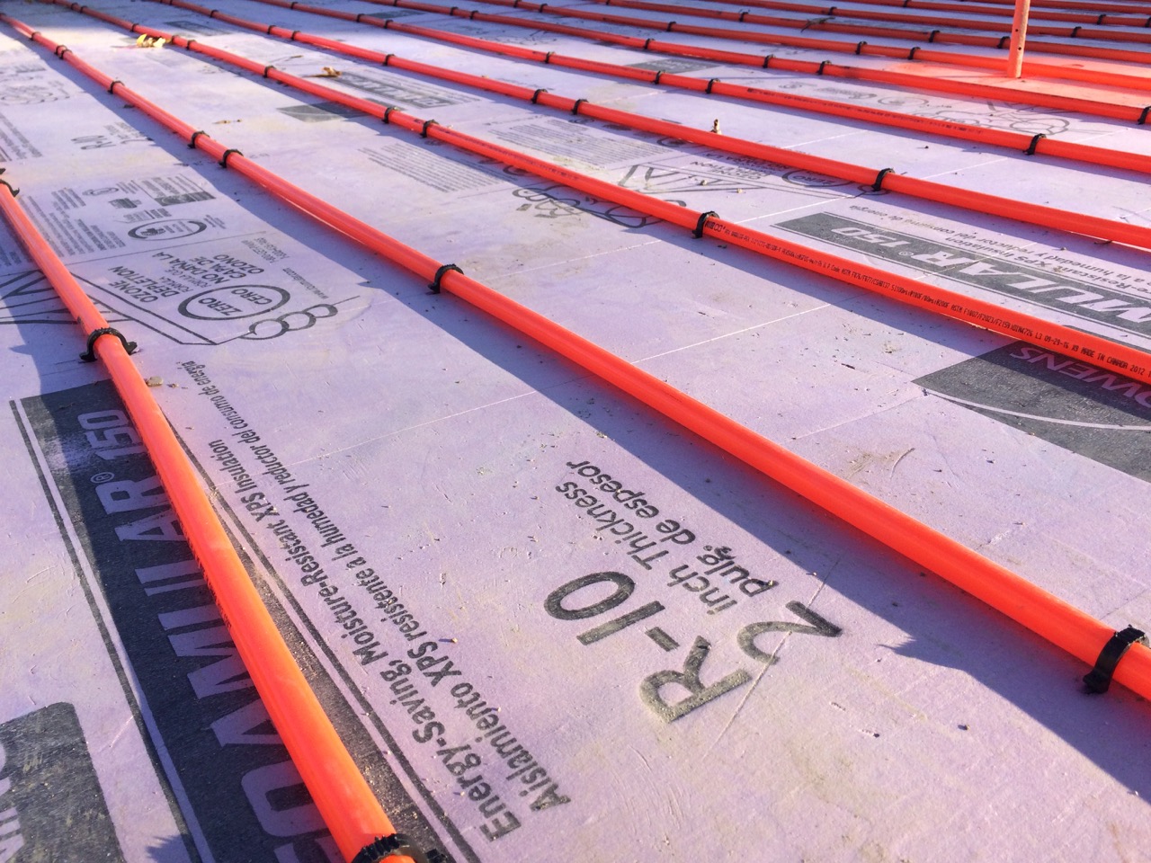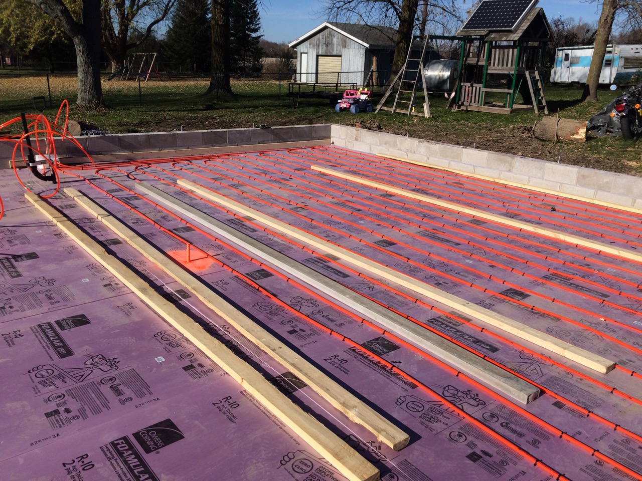This was all right about lunch time, and Wayne had to take off for some other things he needed to get done. I headed off to the store. I also planned to pick up some more 2″ foam for perimeter insulation to go around the concrete to thermally break it from the stem walls. My Dad would be helping out in the afternoon. Also, Monica, the wife of my work friend, Kurt, wanted to come on out to lend a hand and learn about hydronic heat.