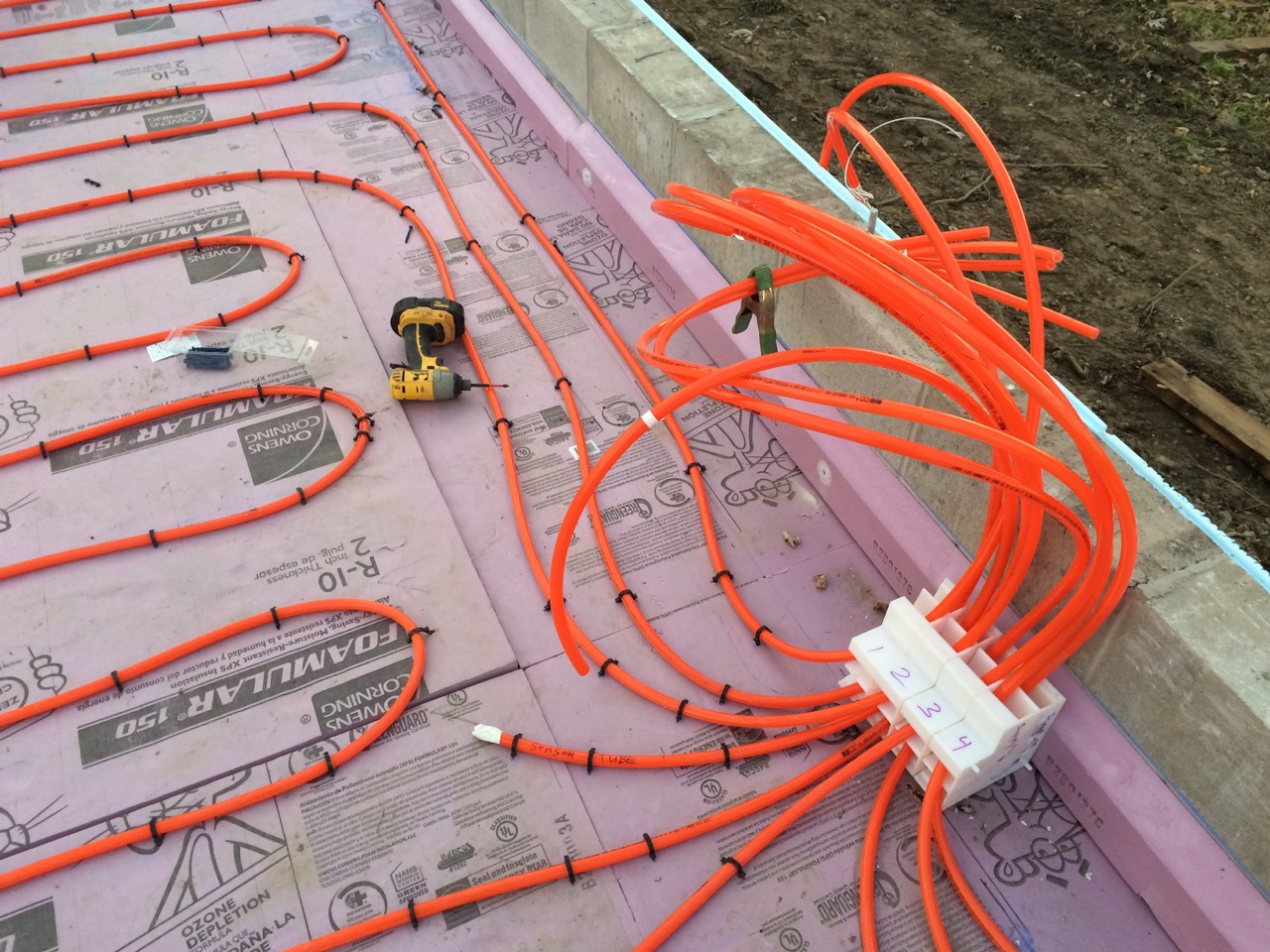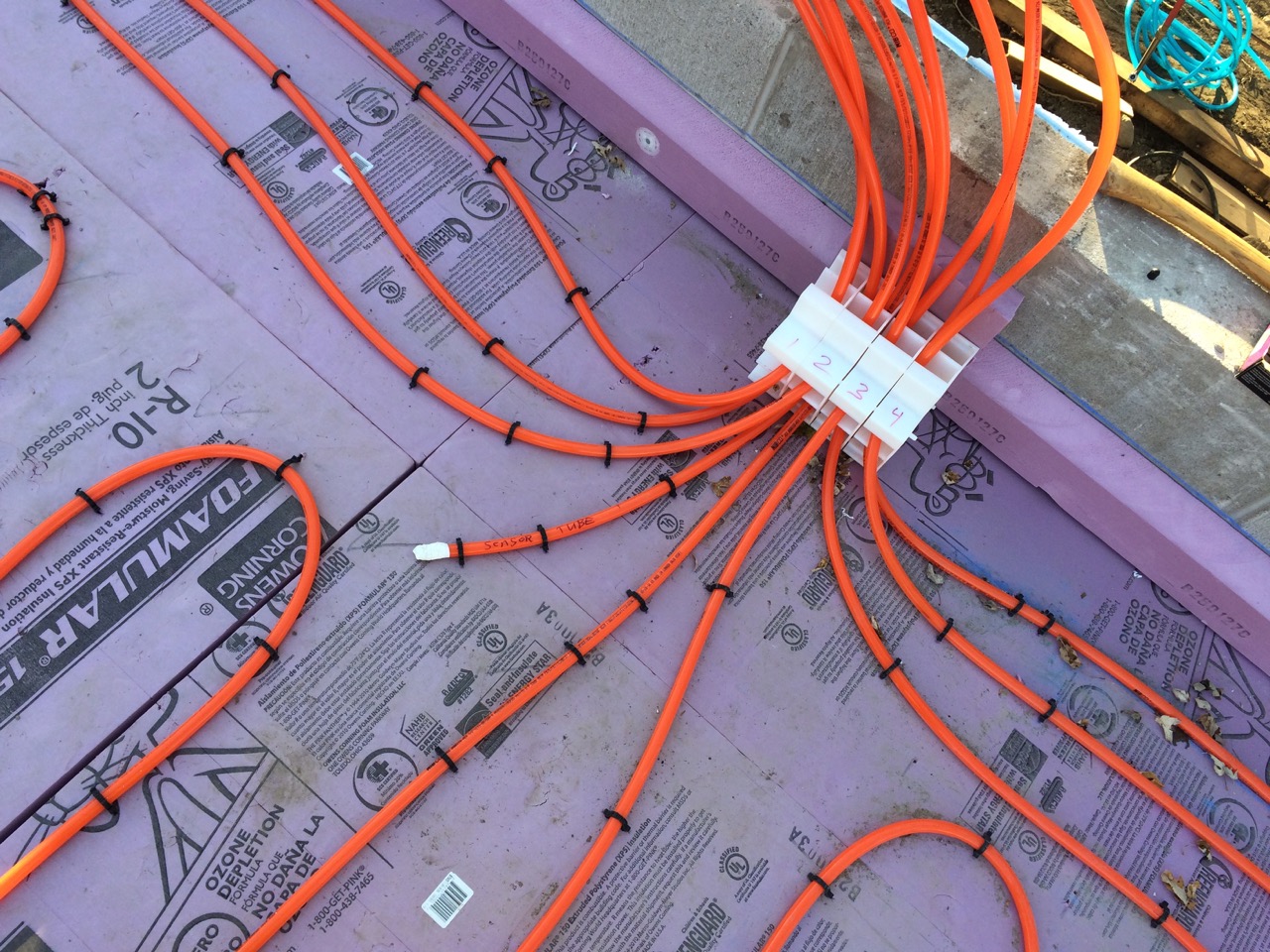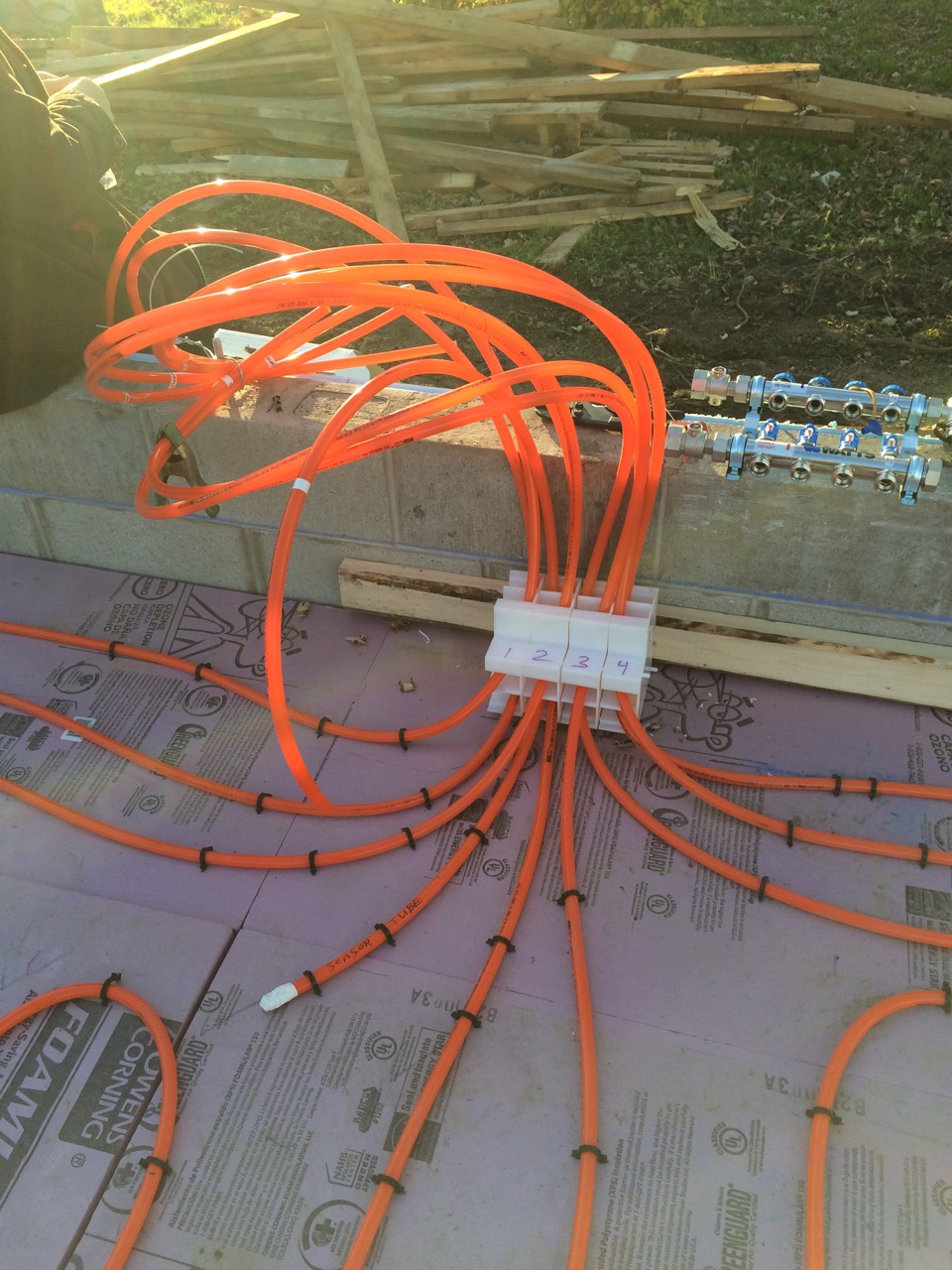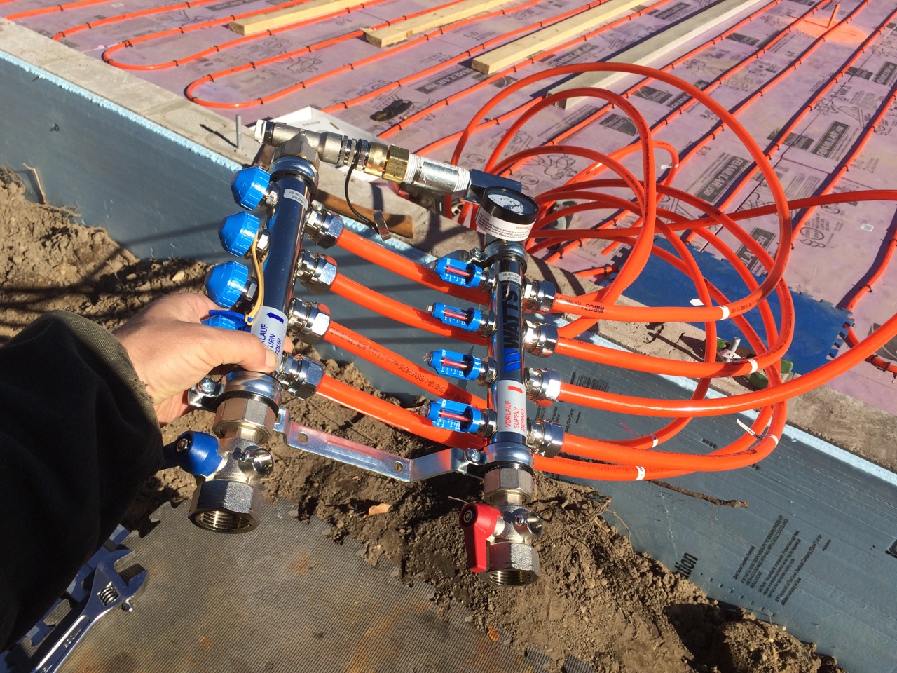 The next day, Sunday, I worked on connecting the radiant heat manifold and pressure testing it.
