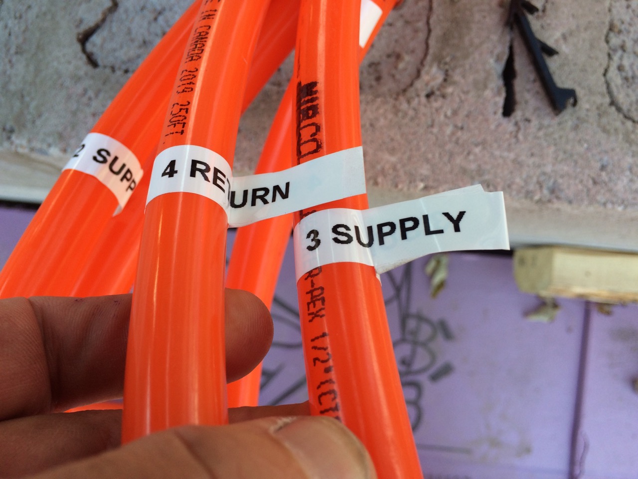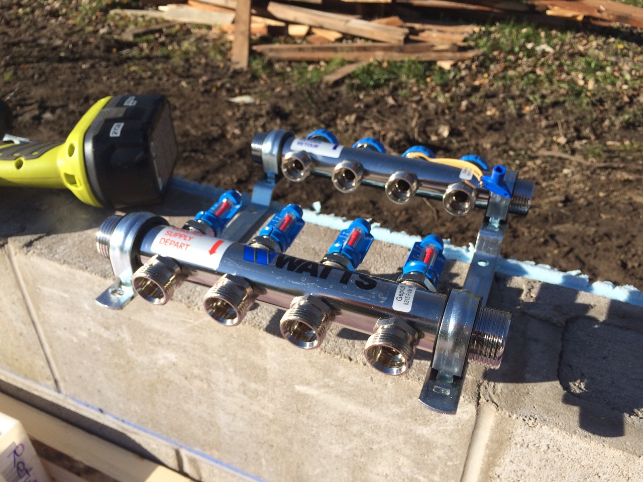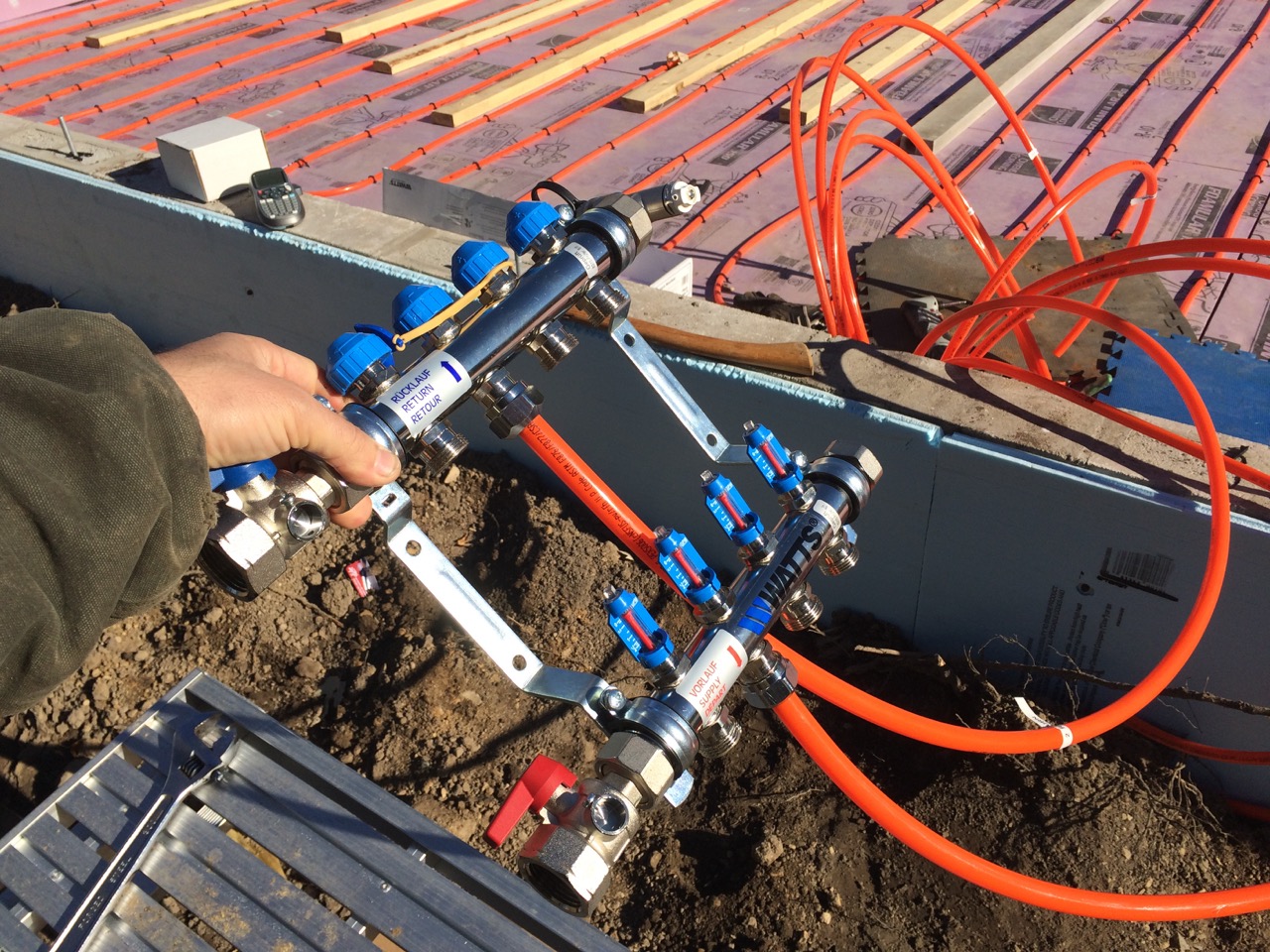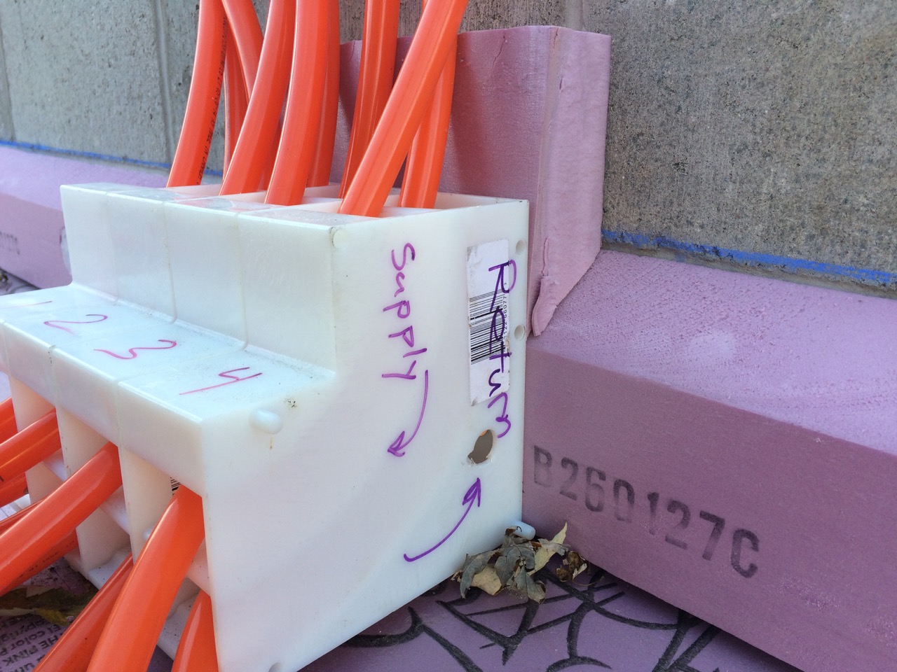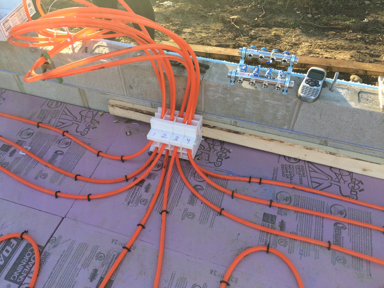 The next day, Sunday, I worked on connecting the radiant heat manifold and pressure testing it.