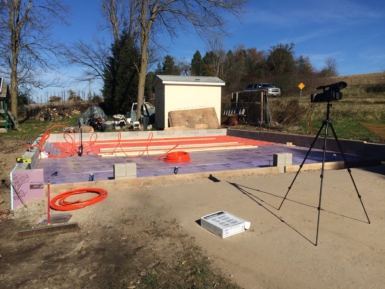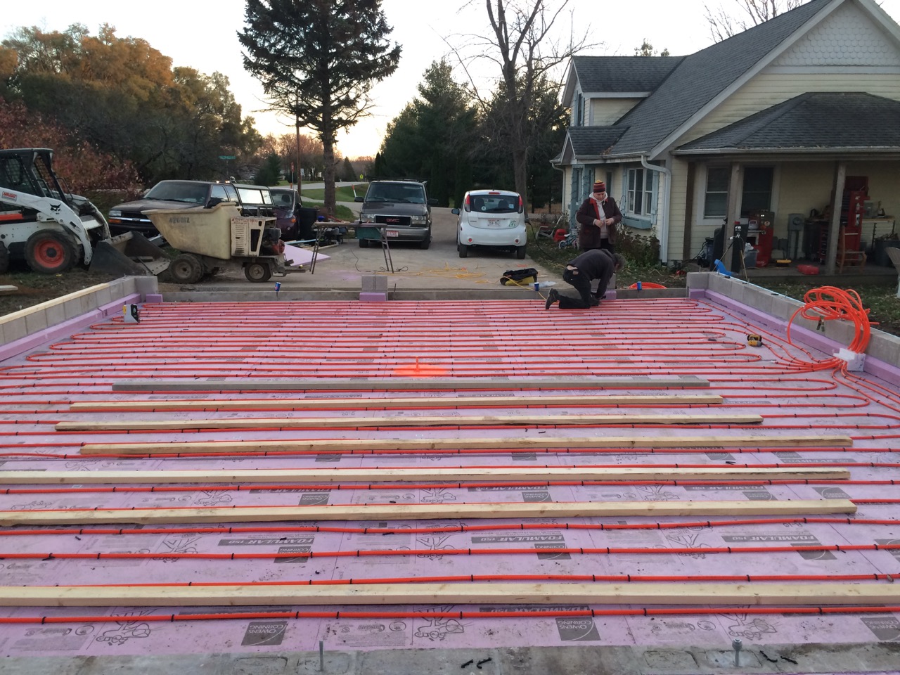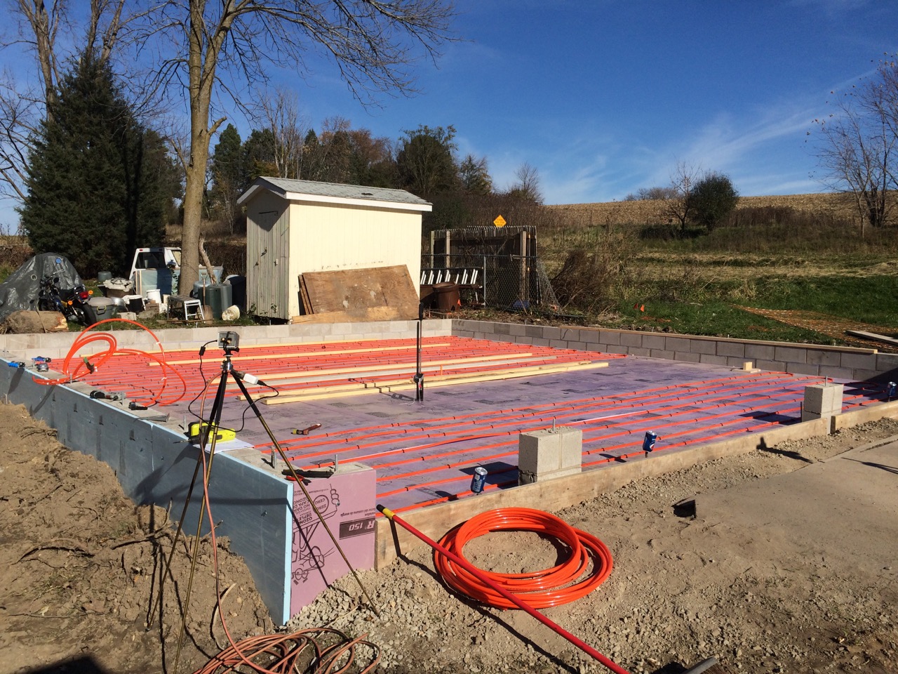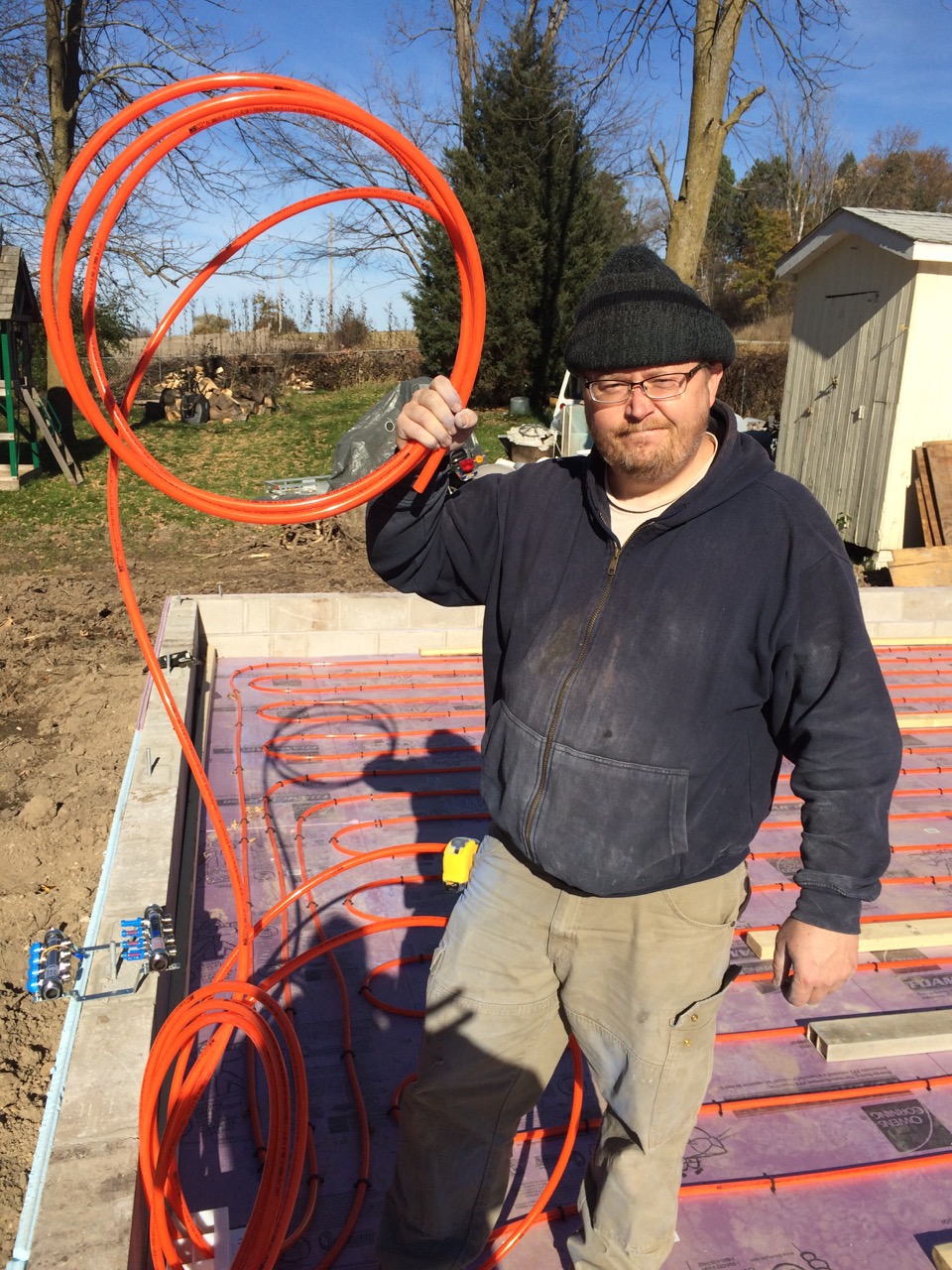Well, this was it, the big weekend – installing the Pex tubing to create a hydronic heating system for the garage BEFORE the concrete gets poured.