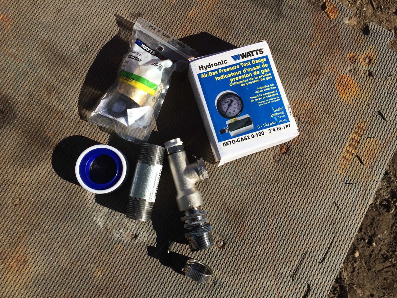 It took a while to do. The total volume of the tubing is something like 8 gallons. I put in 50 PSI, then closed the ball valve on the manifold. I listened for any hissing air leaks, but couldn’t find any. Looked like I did a fine job connecting the Pex to the manifold.
