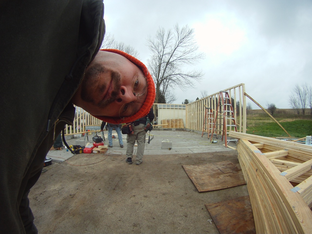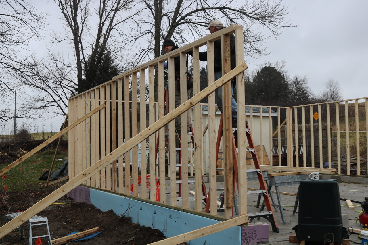 What’s it take to build a few walls? For starters, a crew. My Dad, Jim, and my brother, Wayne, came out today to build walls. Of course, the two of them are pretty experienced when it comes to construction. I’m mostly good at carrying lumber.