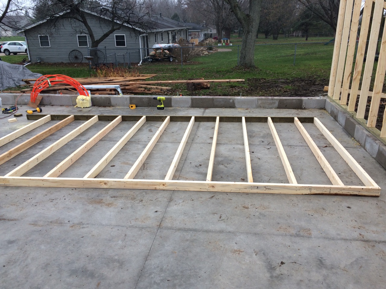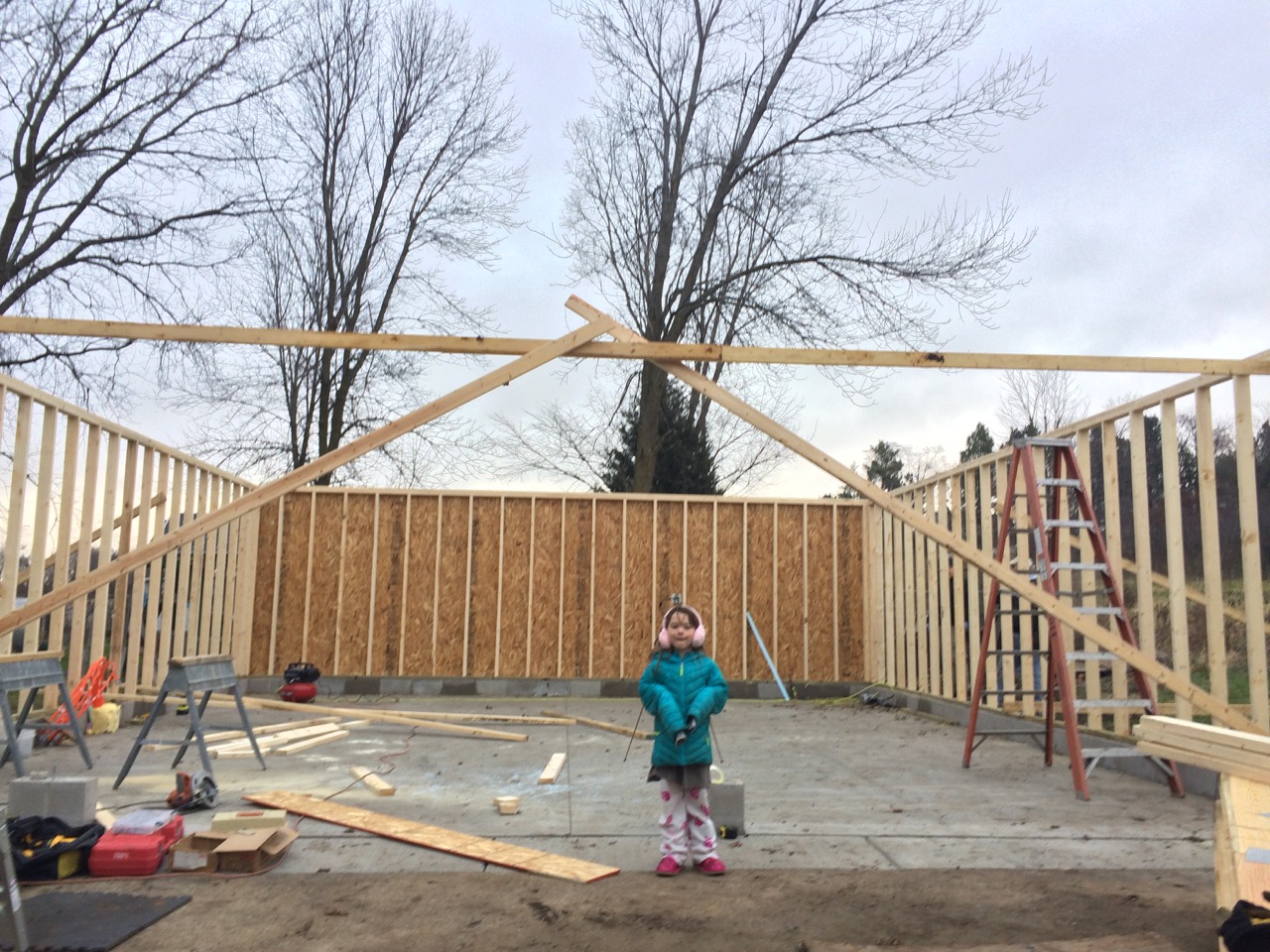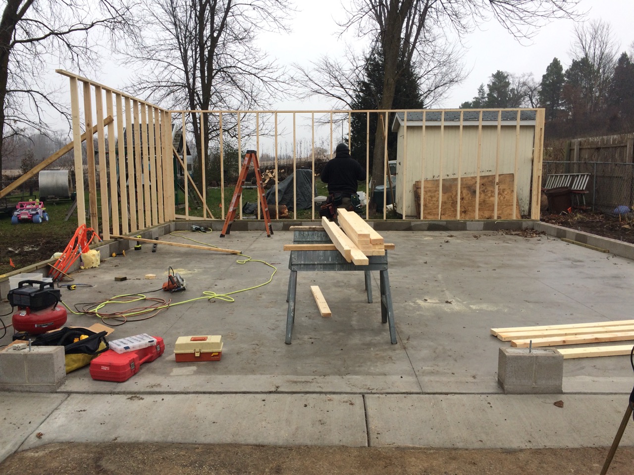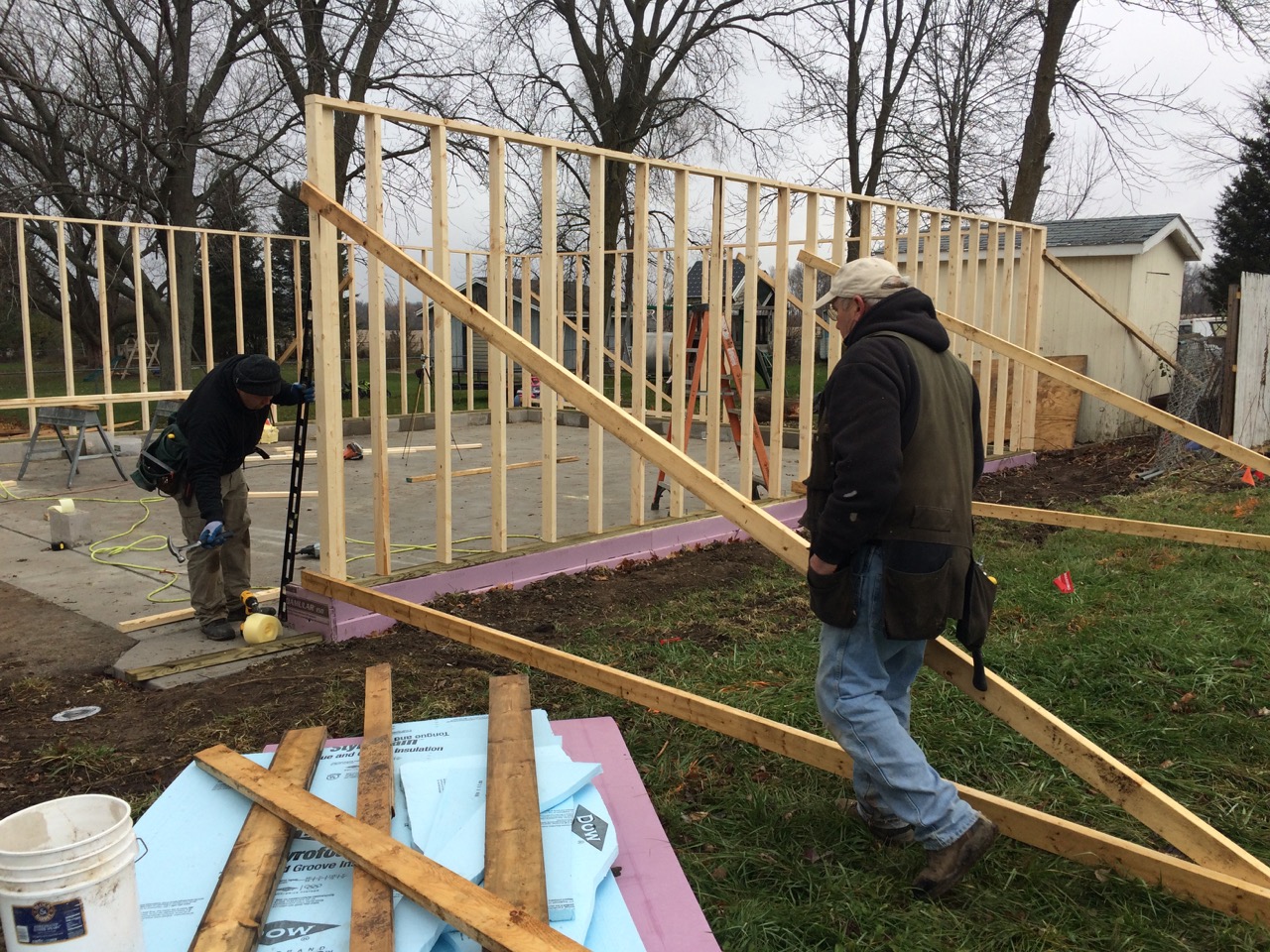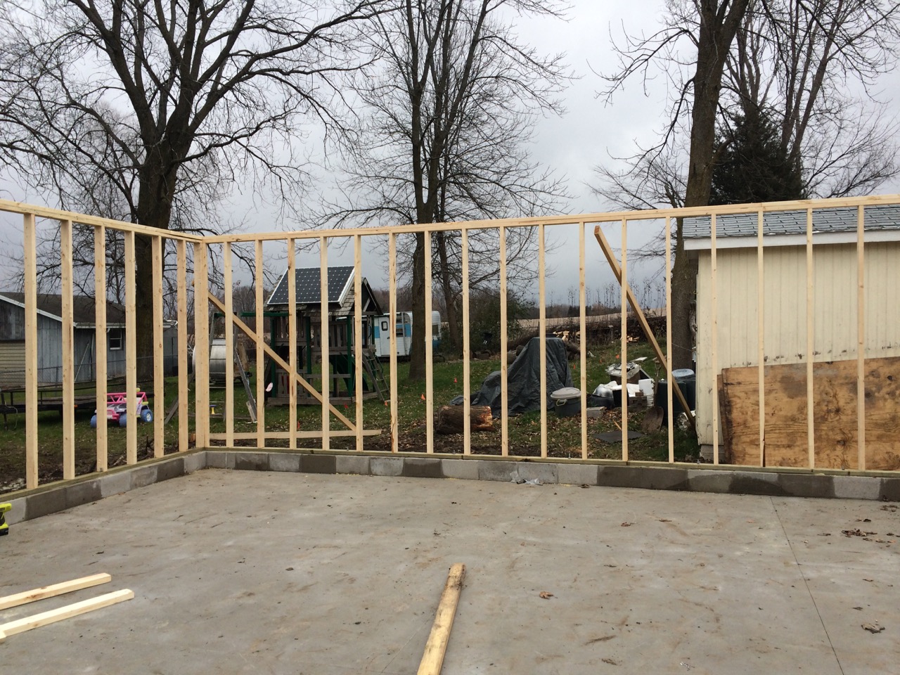 While other folks were out buying their Christmas gifts at the Black Friday sales, we were busy building walls for the garage!