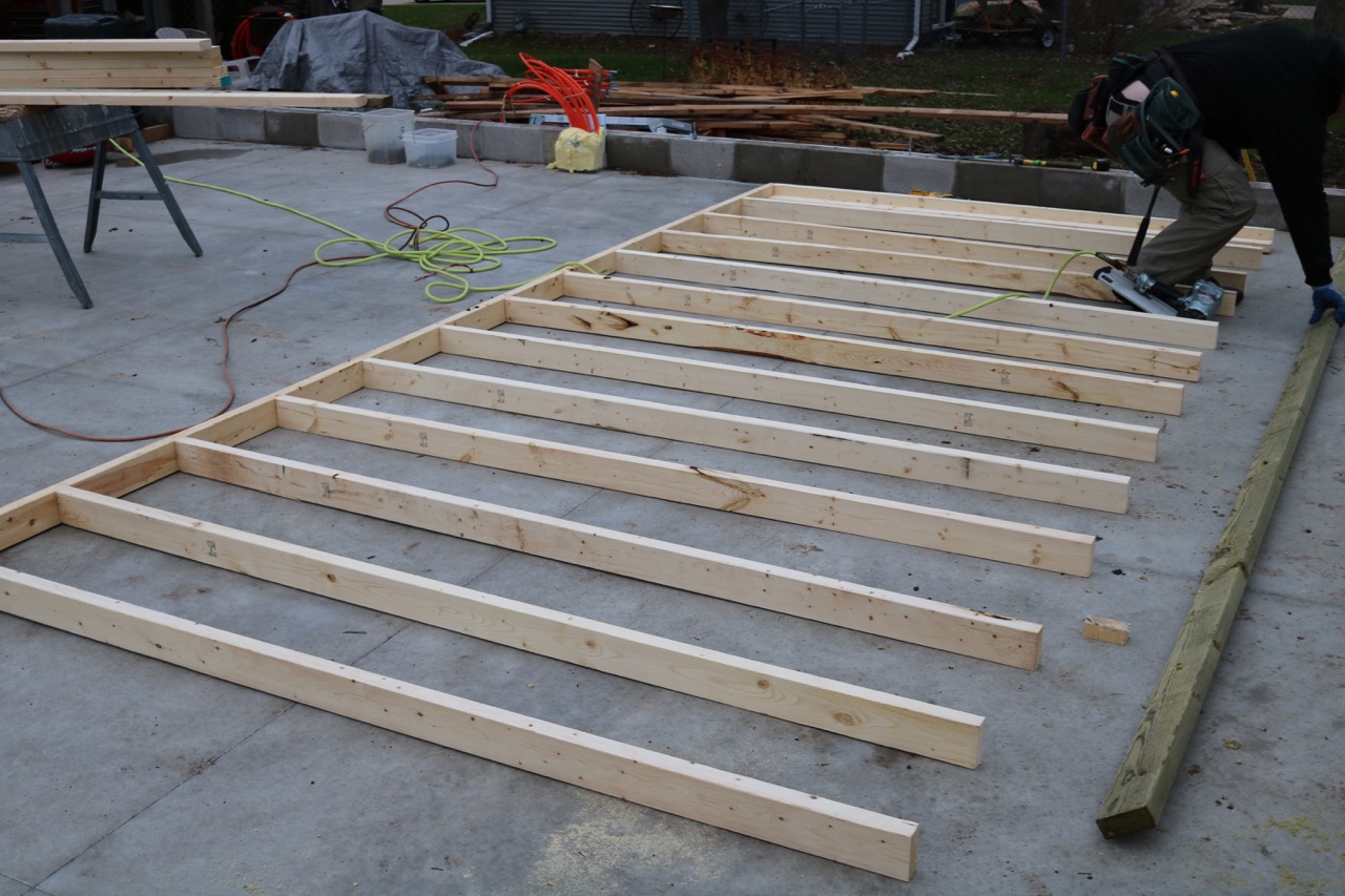 PS: You may have noticed that we didn’t frame in any openings for WINDOWS! That’s right, there’s no windows in the garage. My old garage had one window on each of the three walls that didn’t have the garage doors on it. I found that the windows just got covered by shelving anyways, and I would rather have had wall-space. Also, a plain wall without a window is cheaper, easier, better insulated, quieter, and simpler. Also, without windows, it’s easier to control lighting and sound for filming instructional videos. In the summer, if I want more light, I can just leave a garage door open.