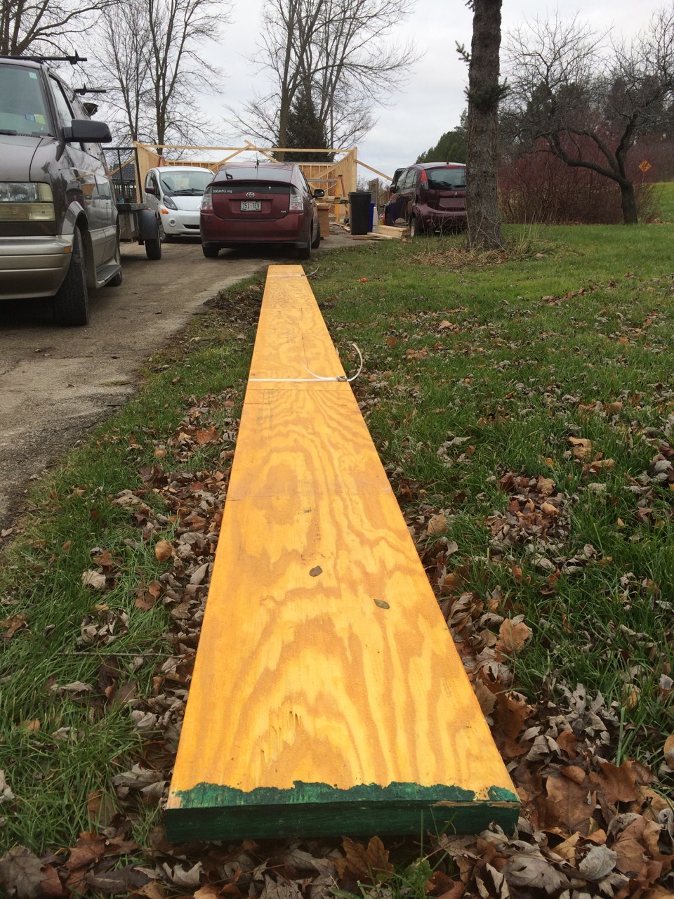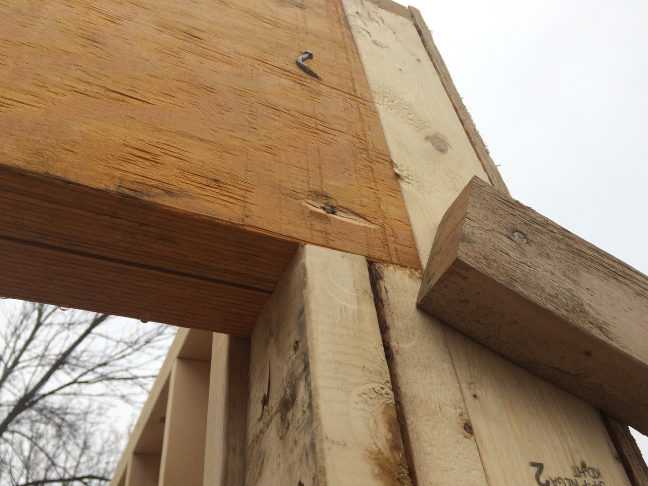We repeated the process with the second micro-lam, made sure everything was straight, then added a 2×4 top plate to it. The two laminates were screwed together with some fancy little screws designed just for said purpose.