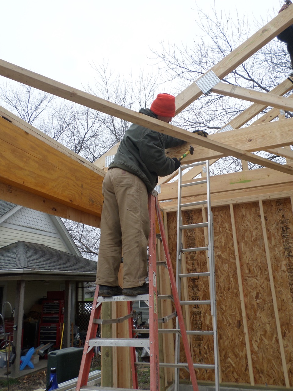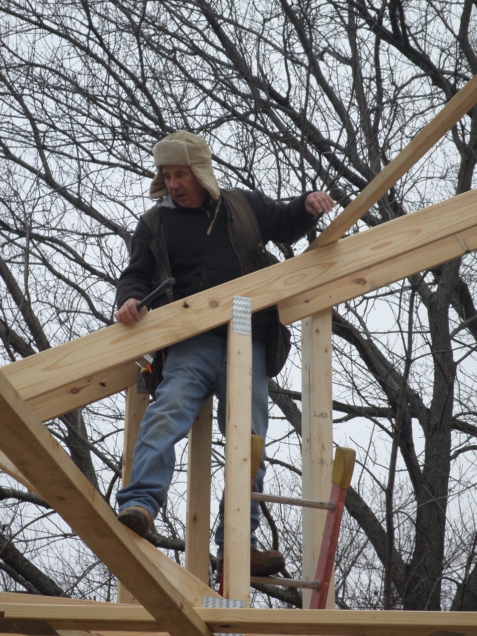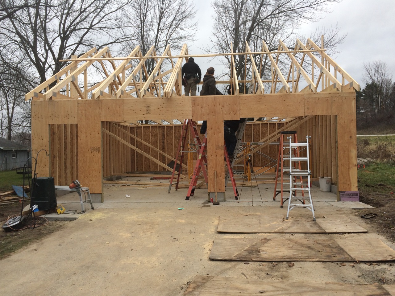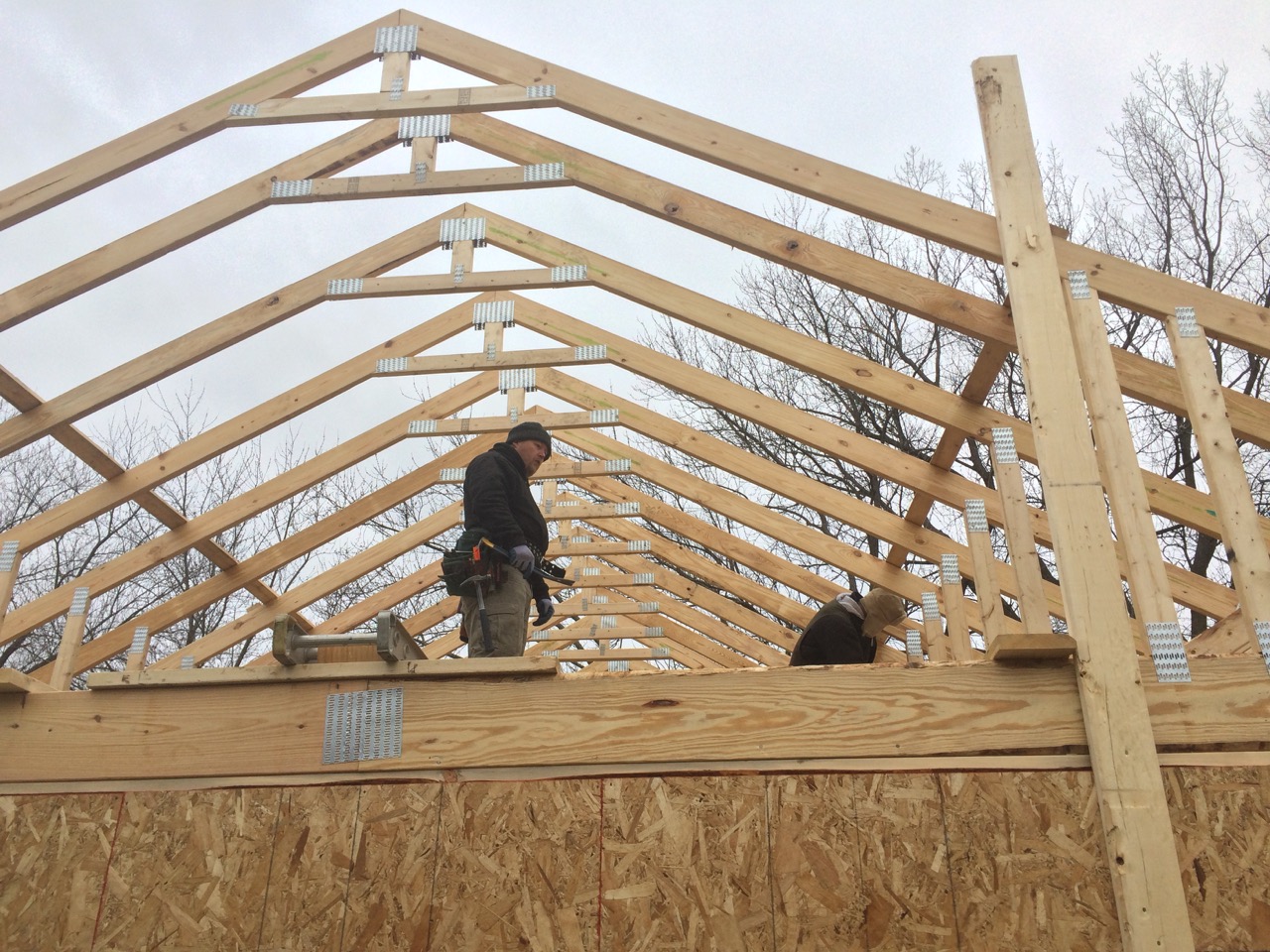 By about 3 PM, we had all the trusses up and in place. We put away the tools and cleaned up, and then I had to head right out to work.
