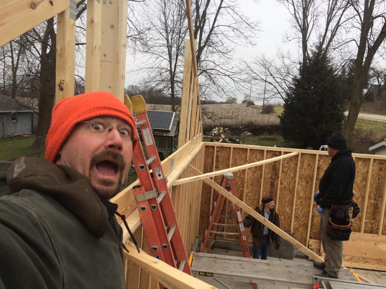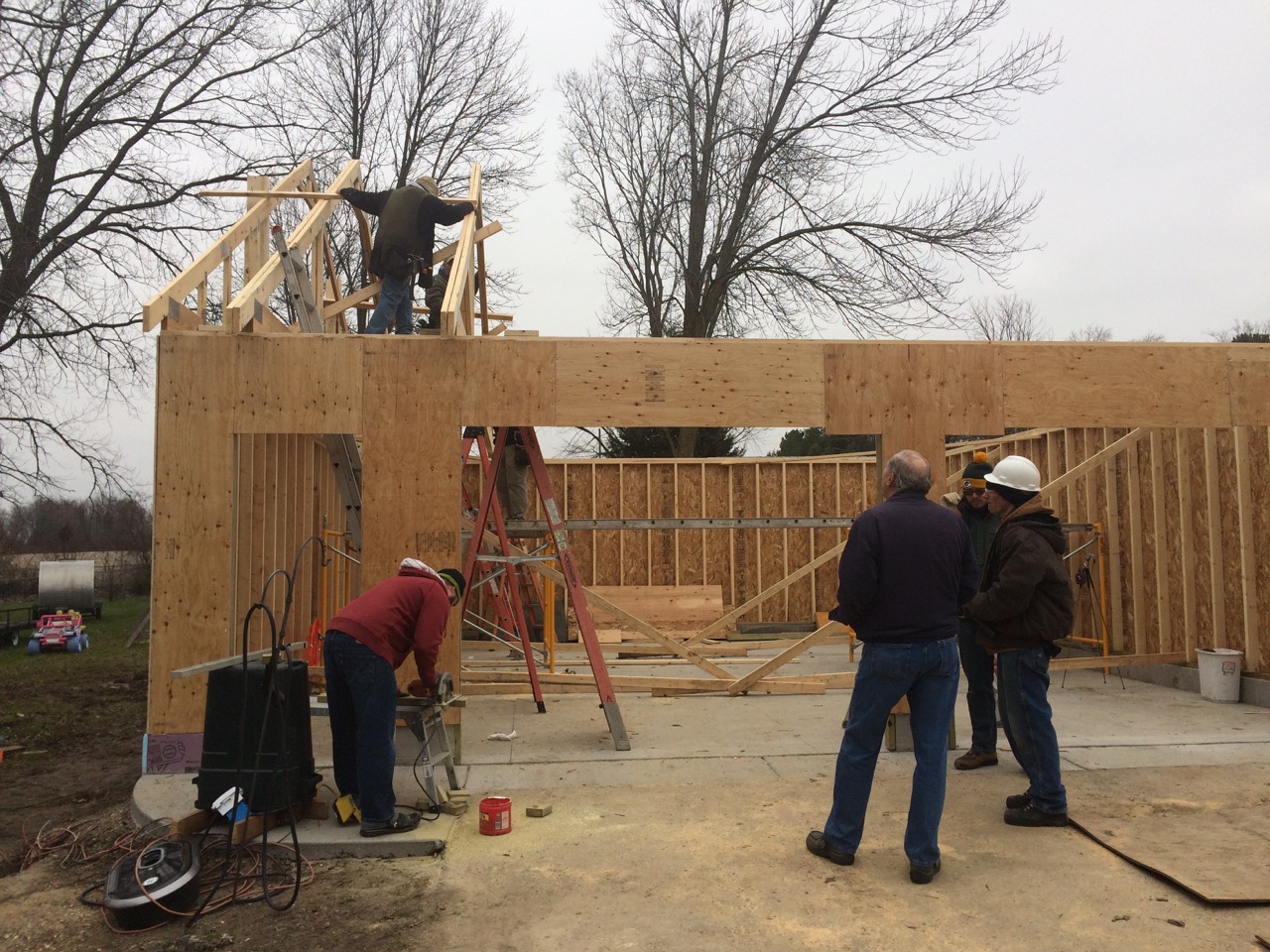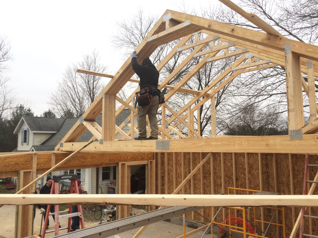 By about 3 PM, we had all the trusses up and in place. We put away the tools and cleaned up, and then I had to head right out to work.