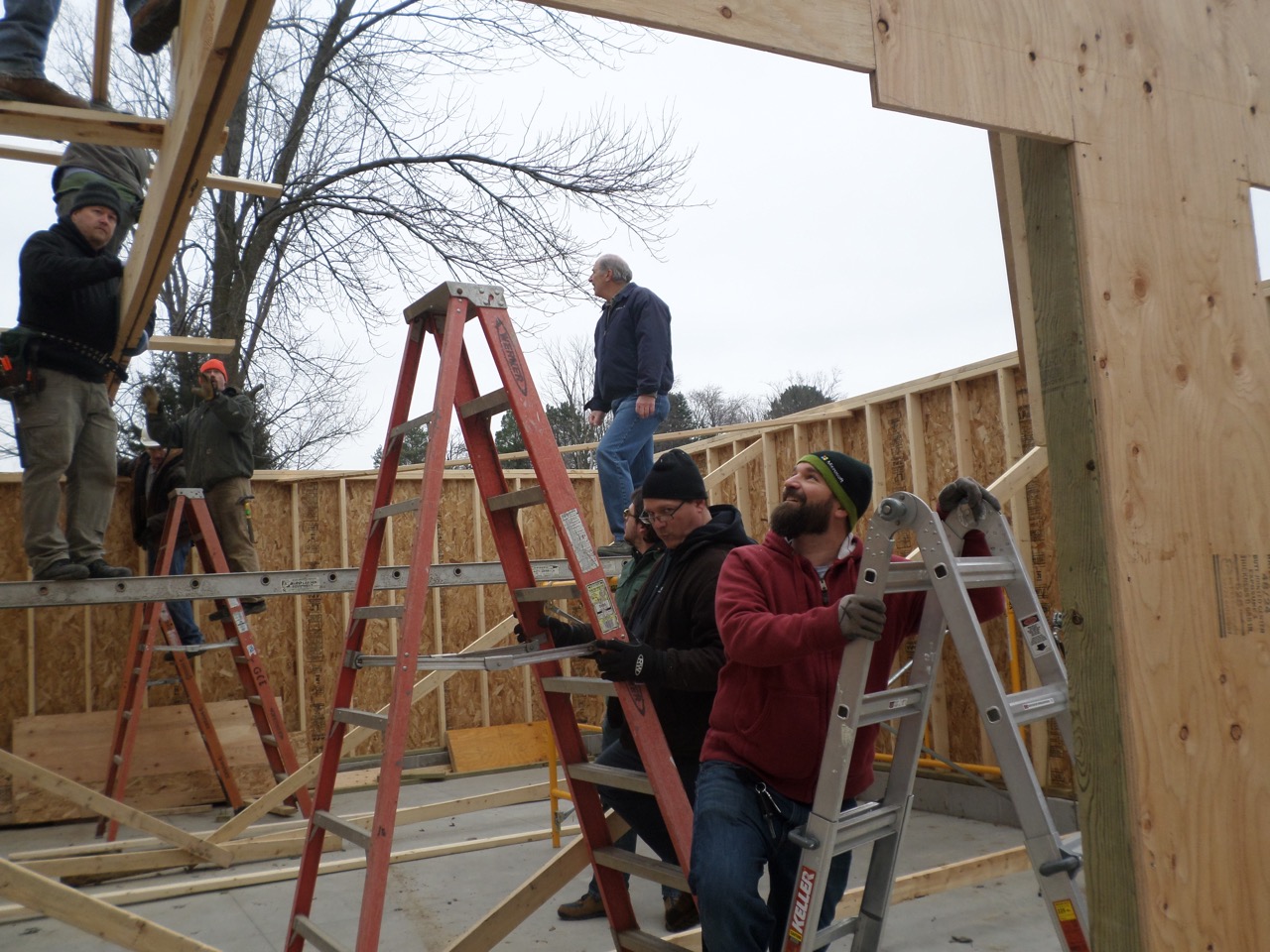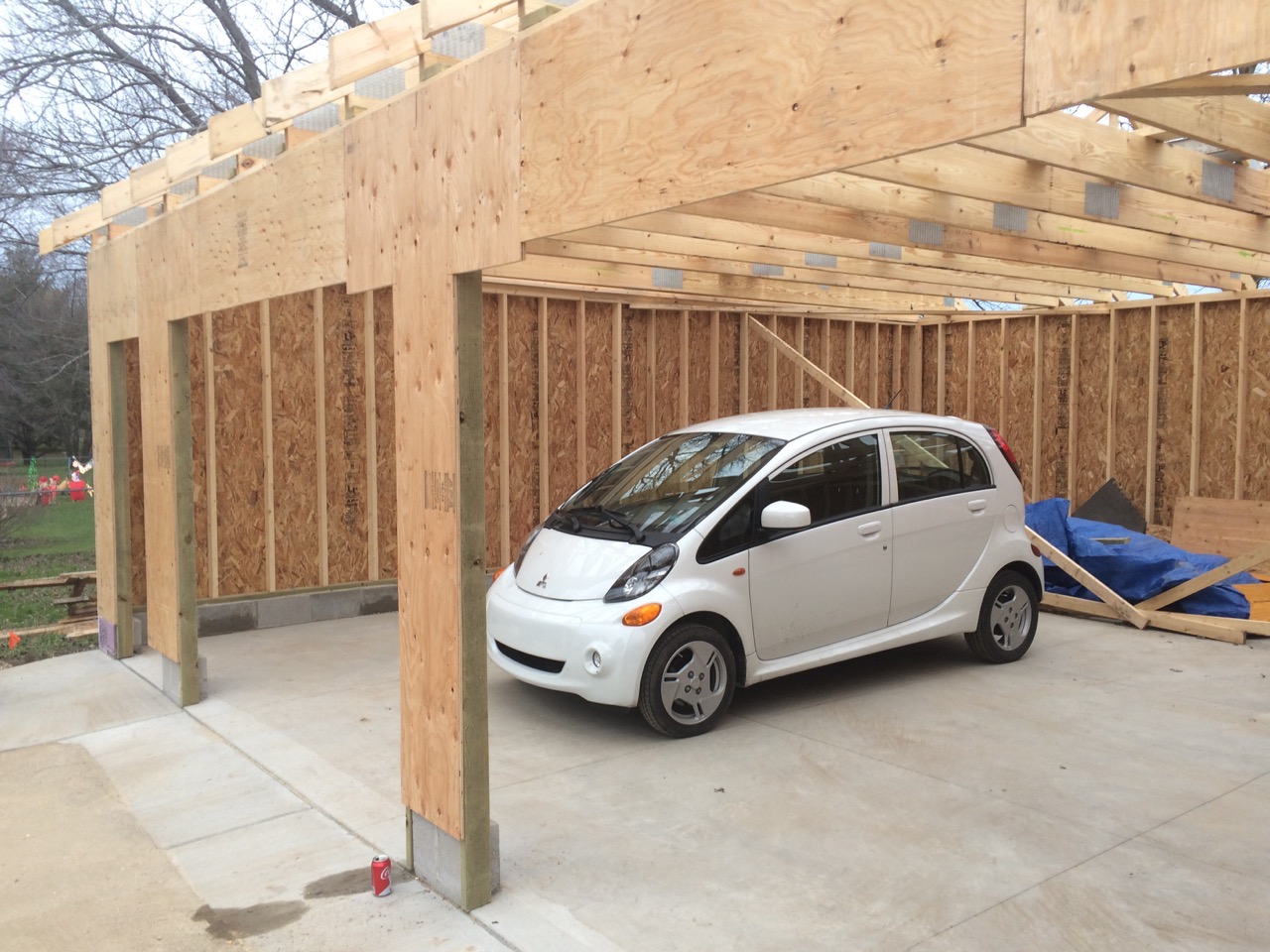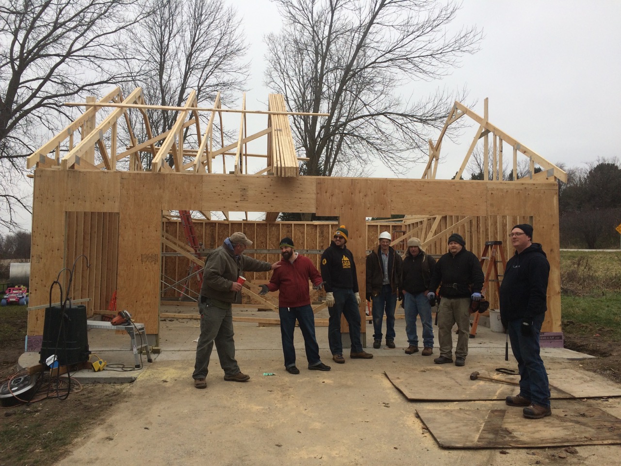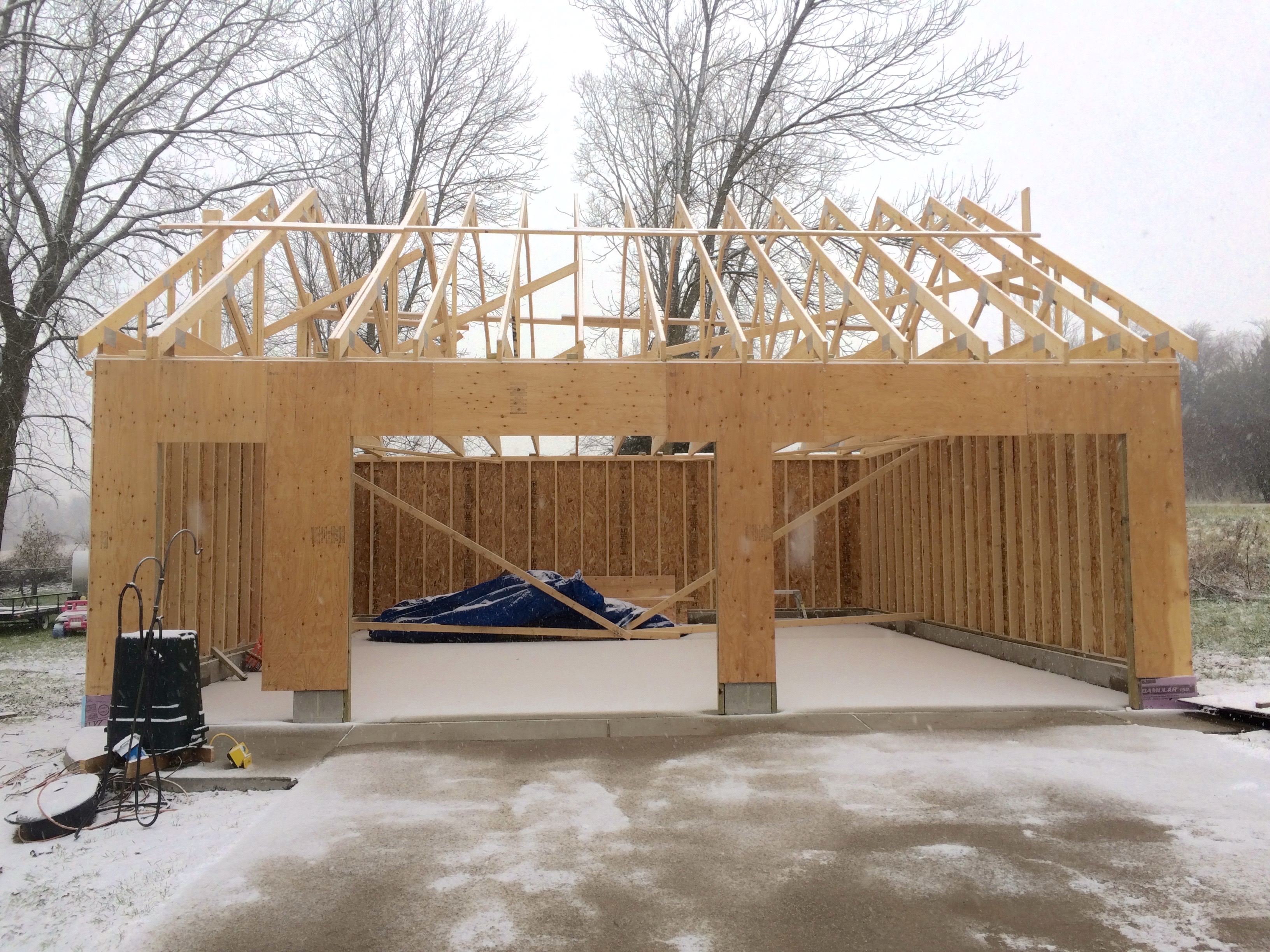By about 3 PM, we had all the trusses up and in place. We put away the tools and cleaned up, and then I had to head right out to work.