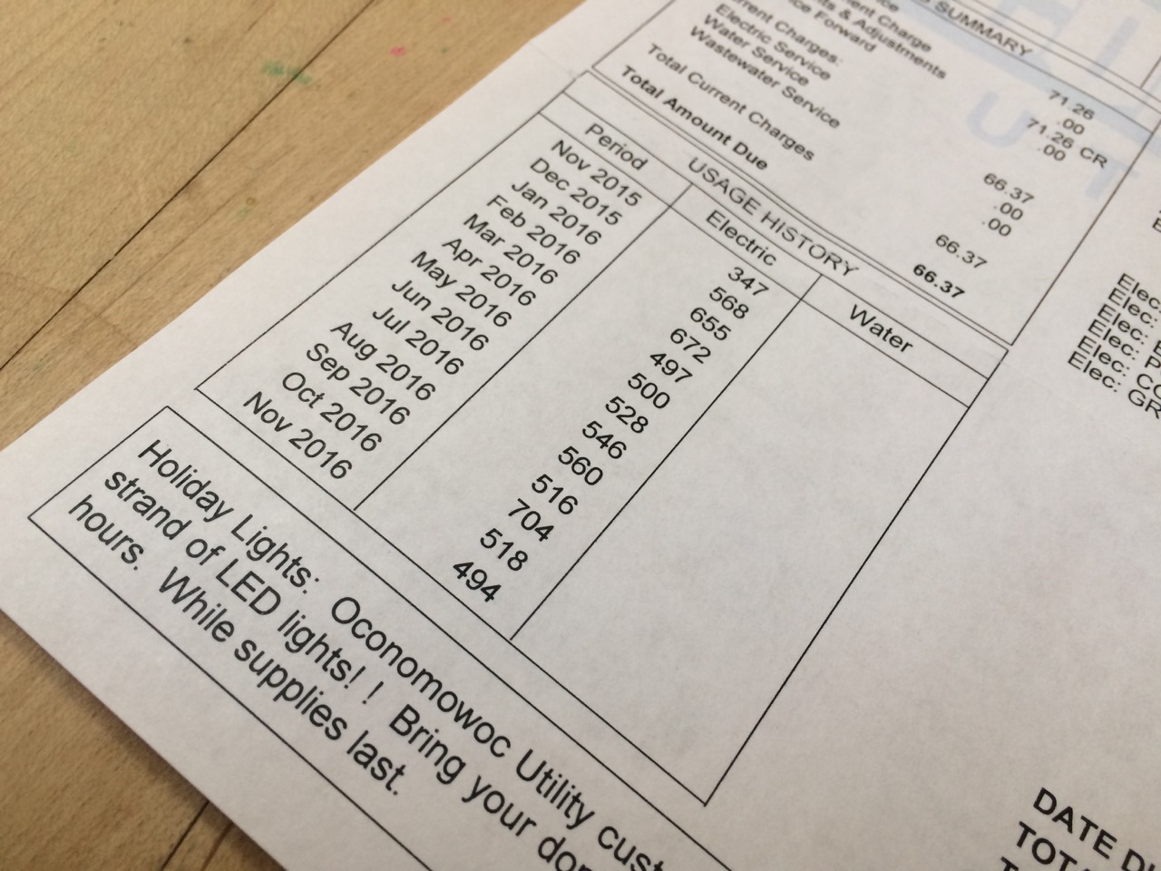 My plan for solar is to have 21 panels of the 60-cell variety in a grid of 3 rows of 7 in a portrait orientation. Each panel will have it’s own grid-tie micro-inverter. This will produce a faceplate value of over 5,000 watts. In my area, we average 4 to 4.5 hours of peak sunlight per day. This should produce a year-round average of about 600 kWhs of electrical energy. My running 12-month average for electrical use is 563 kWh. So, on paper at least, installing 5,000 watts of solar on my roof SHOULD bring me an annual NET ZERO electrical use! That’s for all the power of running my house AND charging an electric car.
