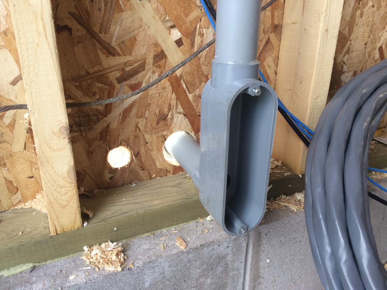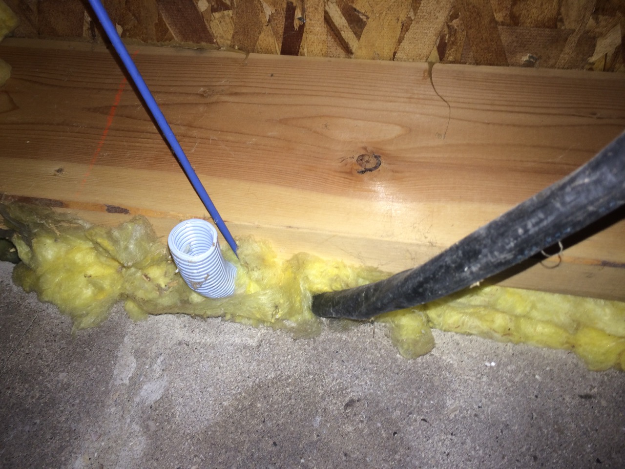 I went down into my crawl-space today to see if there was anything I’d need to move out of the way or otherwise take care of before asking the electrician to go down there. I used the mechanics’ creeper (which is left in the crawl-space for such a purpose) to scoot on my back to the north west corner of my house, where the existing garage electrical runs up into the main electric box. One thing I did see is that there already was a “Smurf Tube”, apparently put in on purpose for running future wires. However, it’s only one-inch tubing. The new garage main cable is going to be thicker than that. Perhaps the tubing itself can be used to fish up the new cable?
