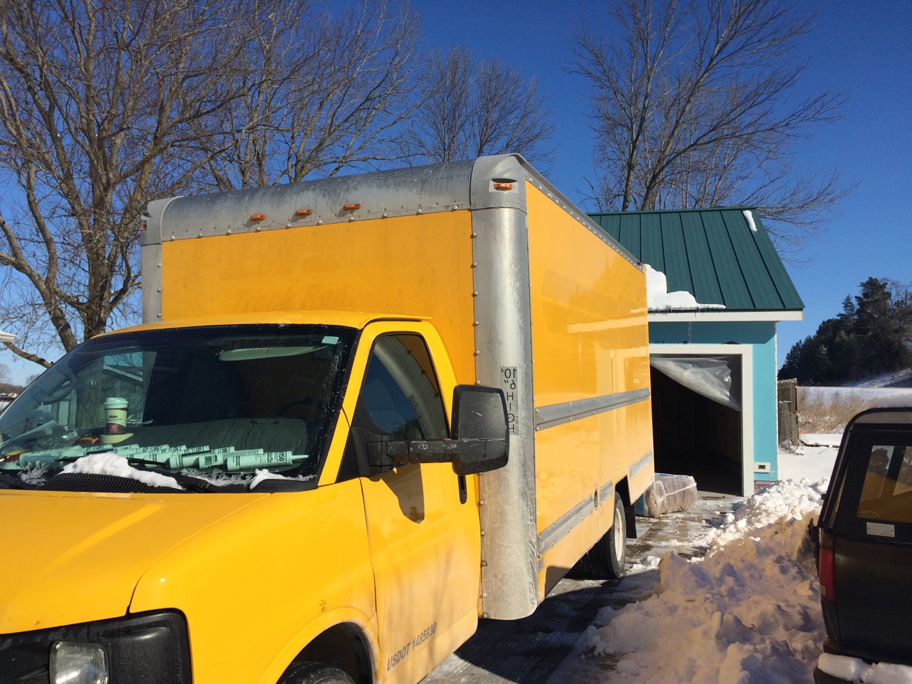 The crew from Dakota Insulation was two guys in a box truck. They quickly unloaded several large bales of fiberglass and got to work.