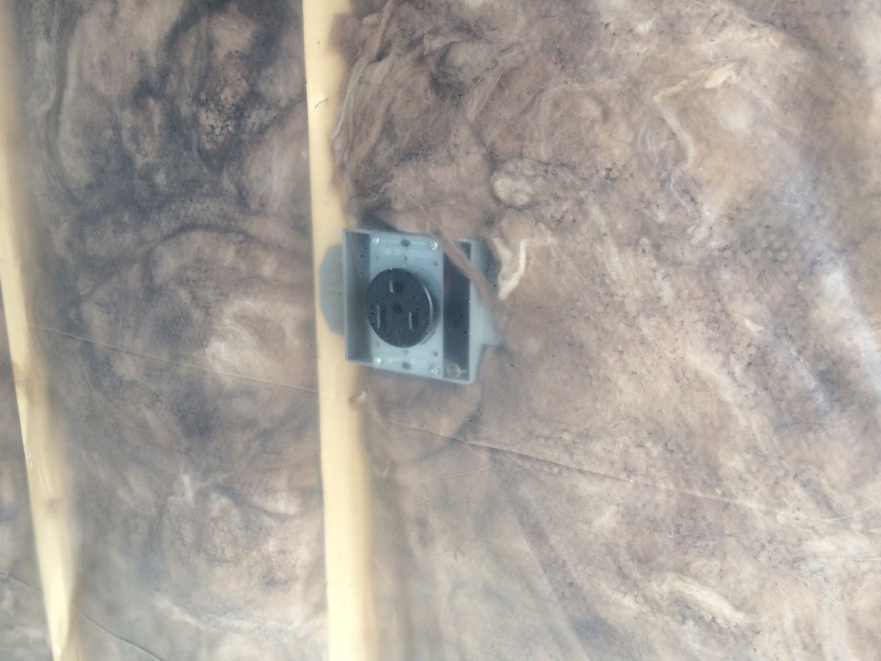 I cut through the plastic vapor barrier at the NEMA 6-50 outlet so that I could re-mount my Level 2 EVSE electric car charging station.