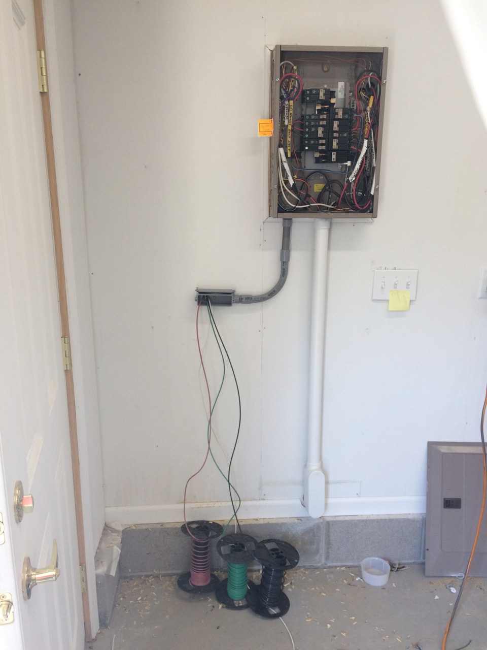 It was also good to have an electrician because he has all the spare odd electrical bits in his truck (instead of yet ANOTHER run to the store) and he had the large reels of wire (which are very expensive to buy from the big box home improvement store.)