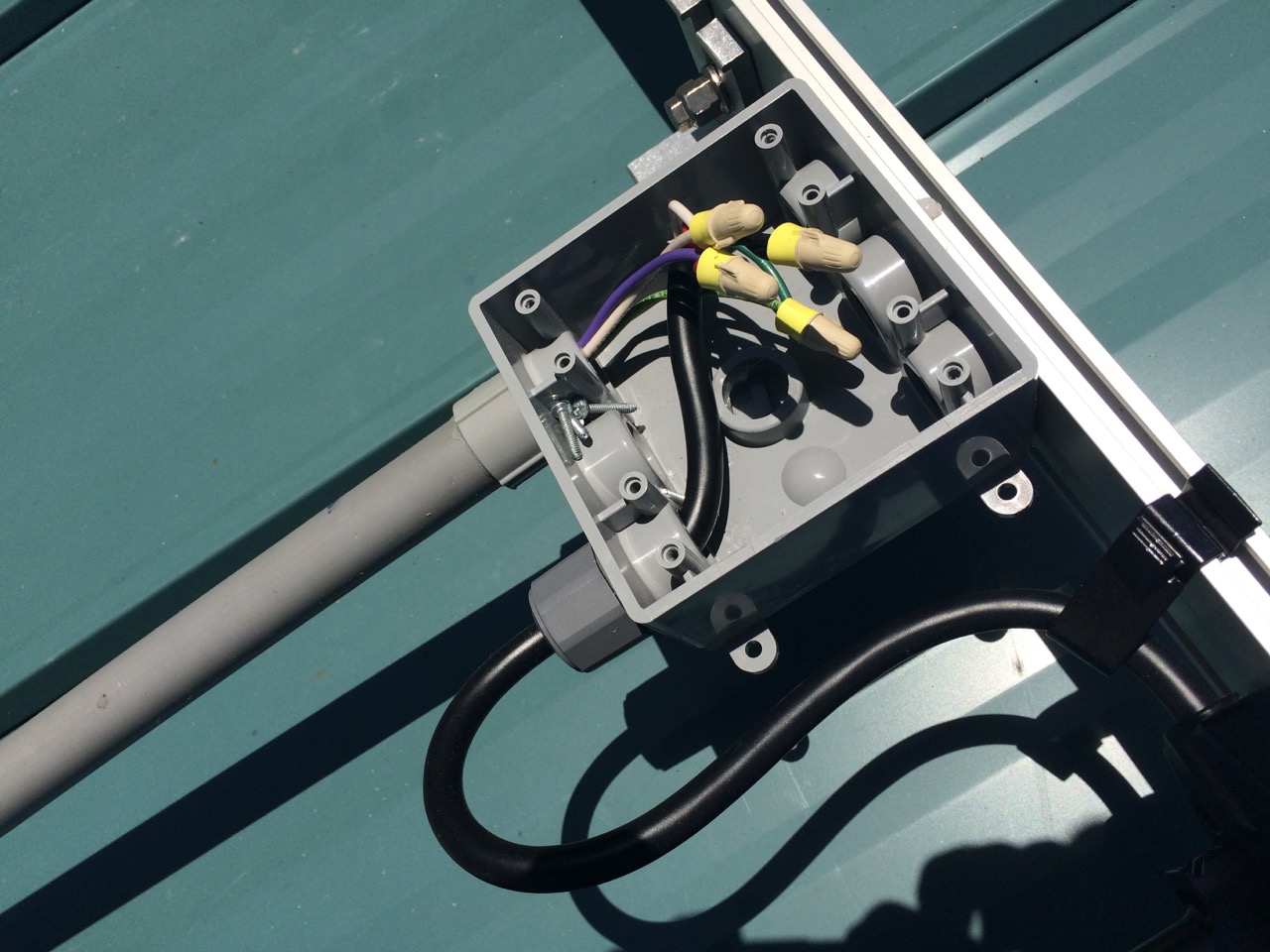 I checked over everything on the roof and closed up the weatherproof junction boxes.