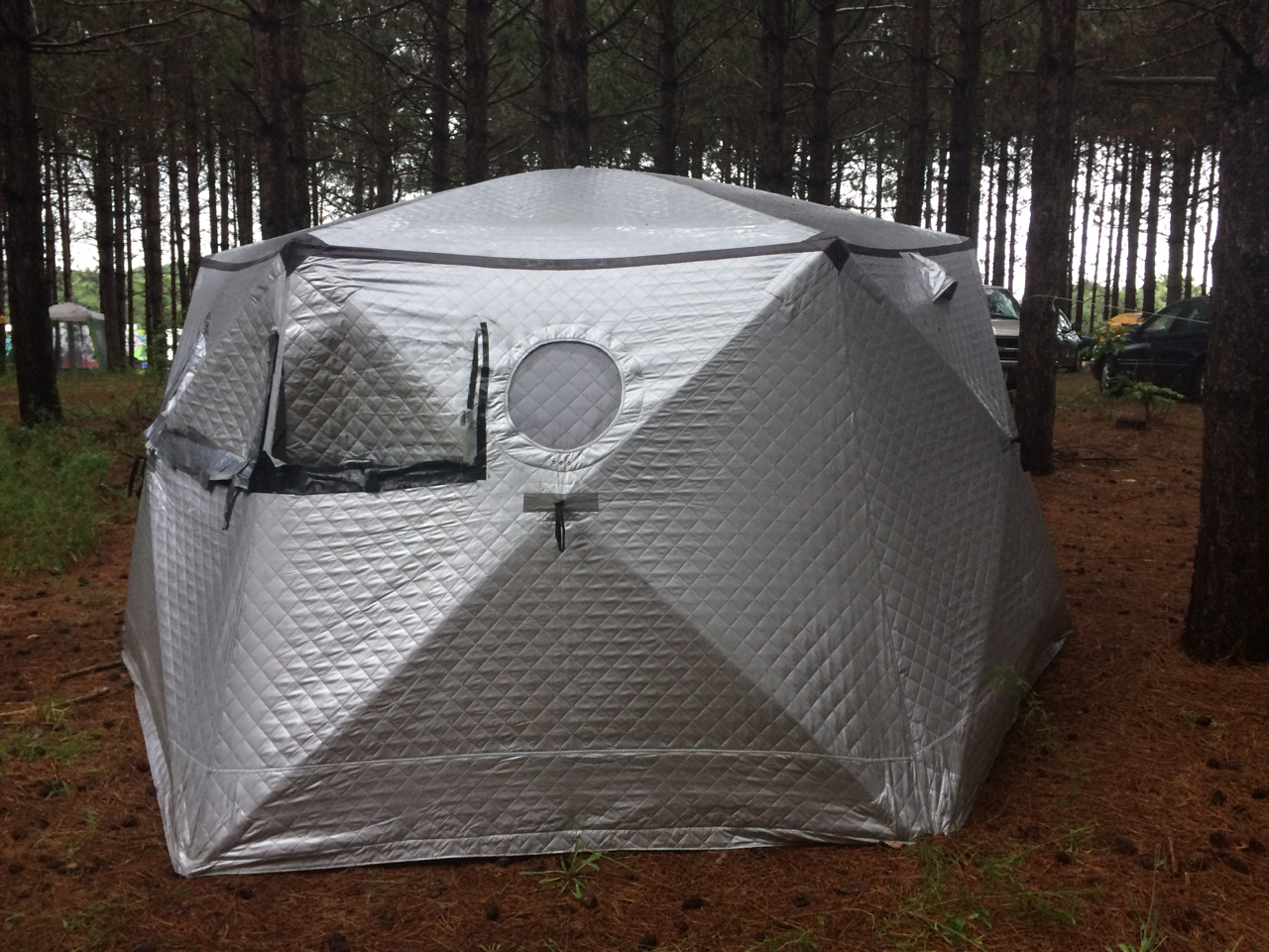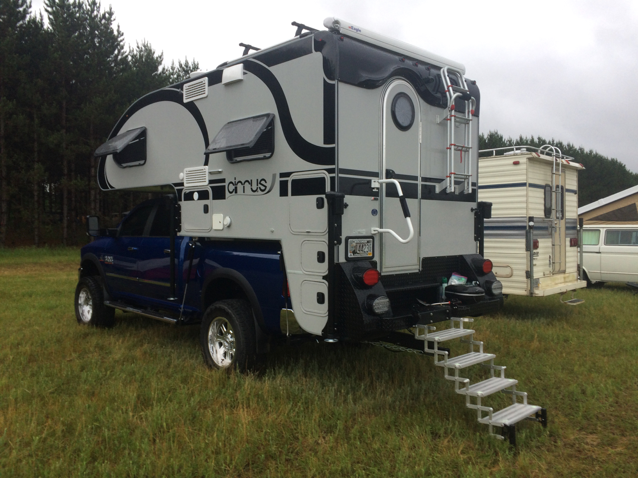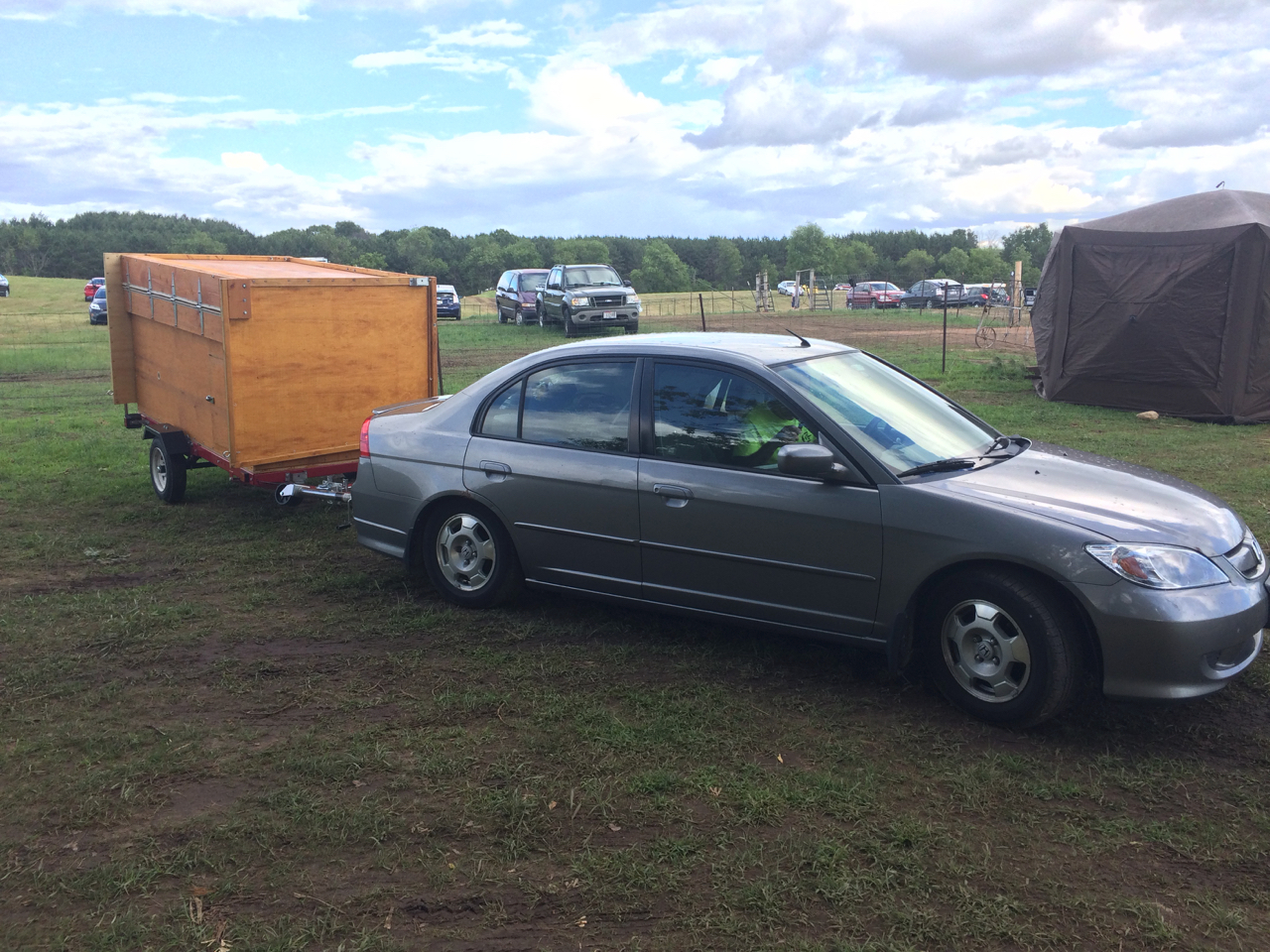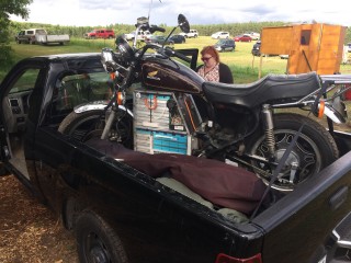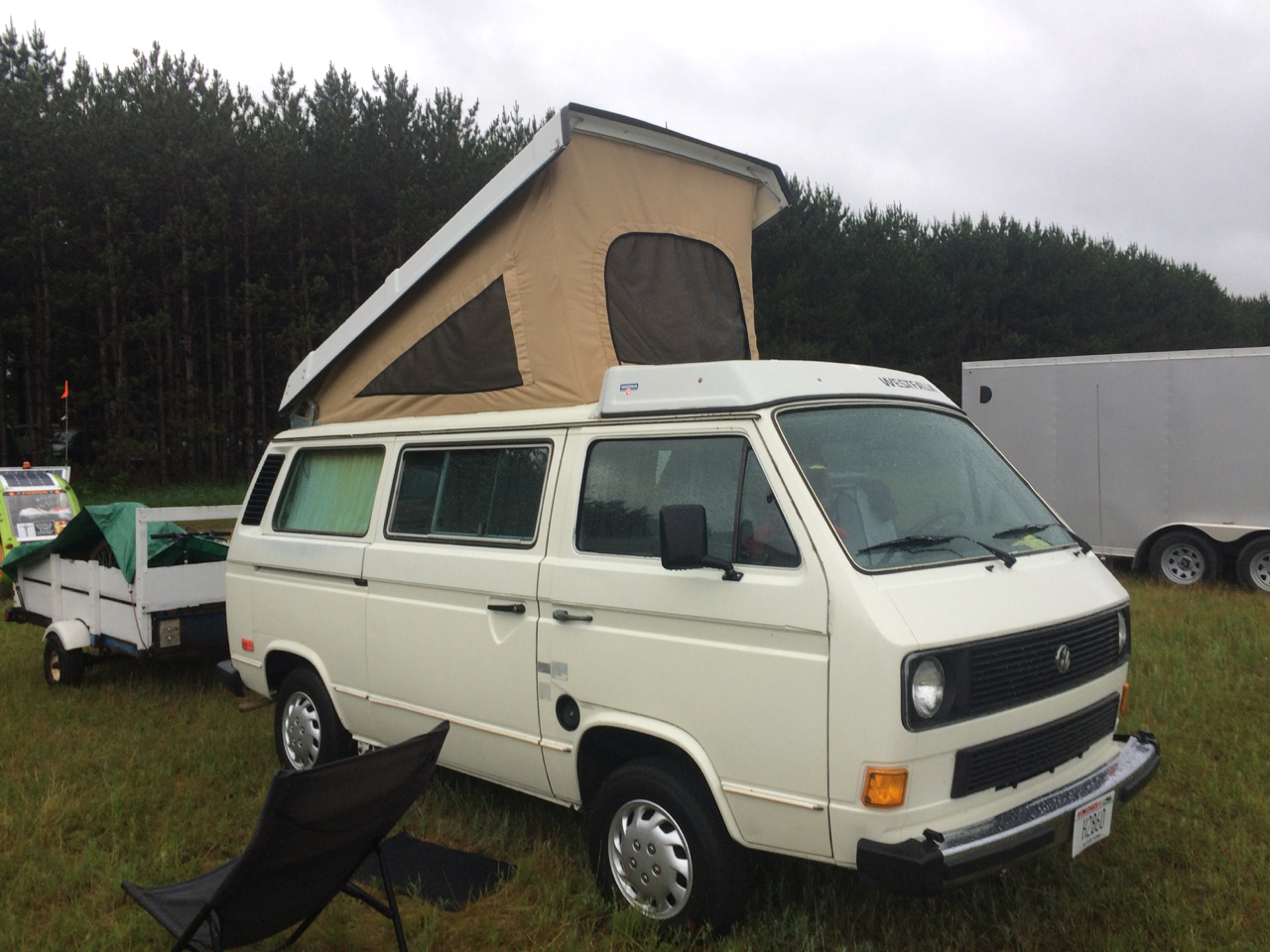 We have to put a few checks in the “New Friends” column as well. Also in the car show area was a DIY Pop-Up Camper! Being a camping trailer builder myself, I had to check this one out! I talked with the owner just a little bit. (Was it John?) The trailer had a clever design. It’s basically just plywood on a Harbor Freight trailer, but folds from fairly small to full standing height and what looked like a Queen-sized bed! You can see more of the trailer on his blog: https://diytinycamper.com