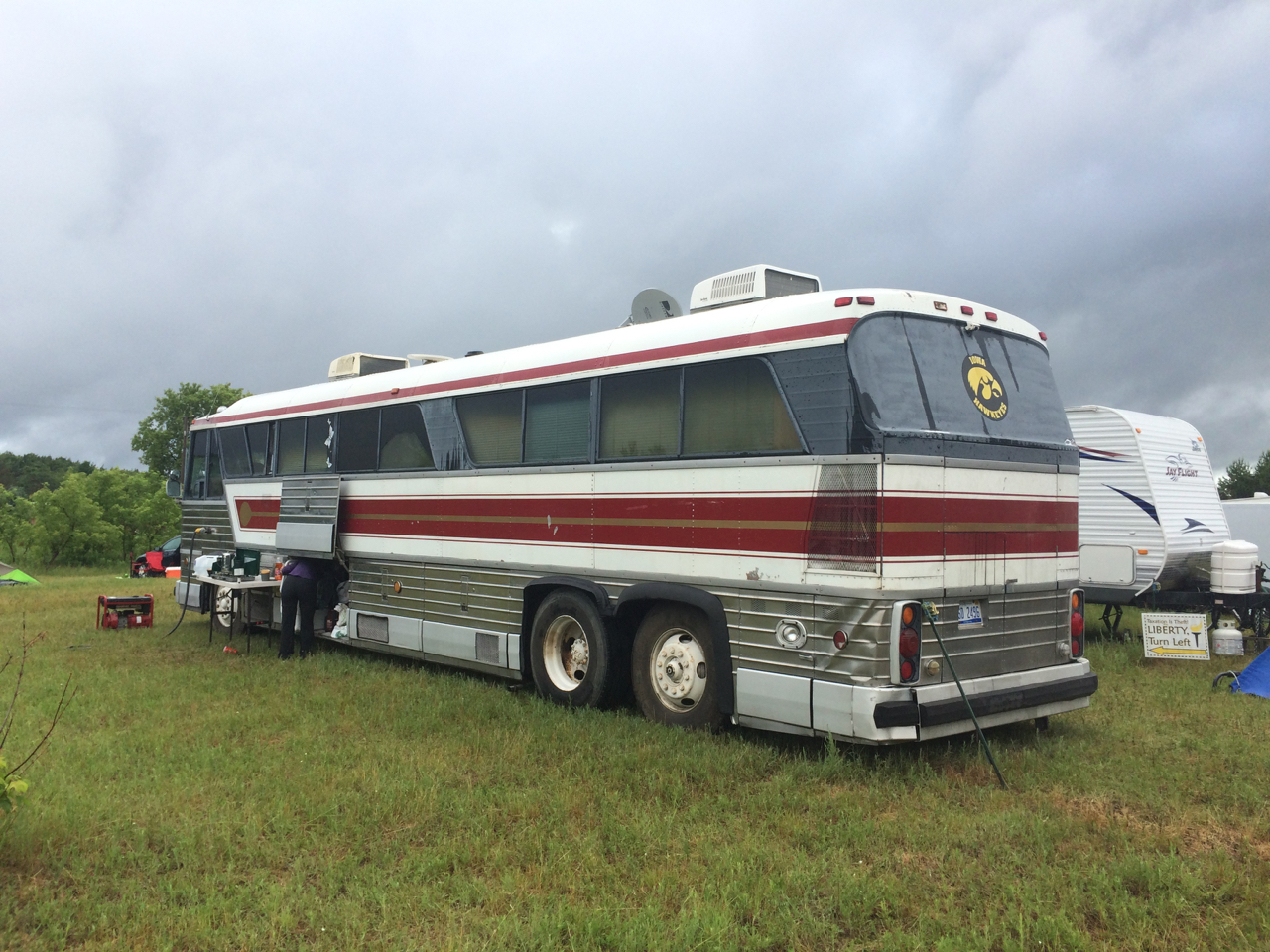 For me, camping at the “Back 40” campground has also become part of the experience. This campground is nearby and run by the fair. Many volunteers, vendors, and presenters stay there, often huddled at the “Coffee Bean” trailer early in the morning for caffeine and conversation. I love the motley array of campsites, ranging from walk-in tents, to a Geo Metro with a rope slammed in the door and a tarp thrown over the rope, to a 50 foot converted Greyhound bus. I also saw a strange modern yurt that appeared to be designed especially for festival use.