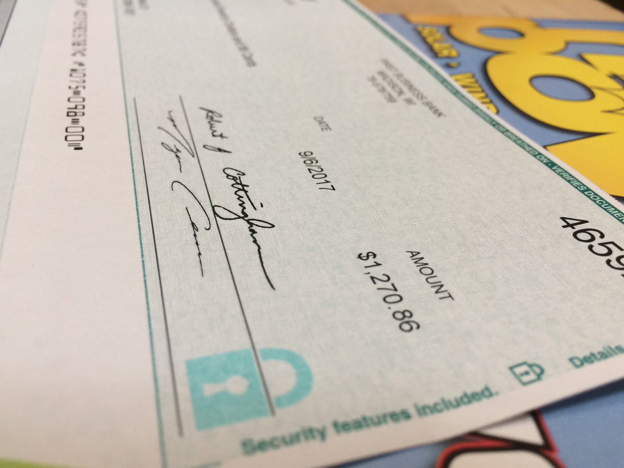 That’s an actual check written out to me – not a tax deduction or tax credit.