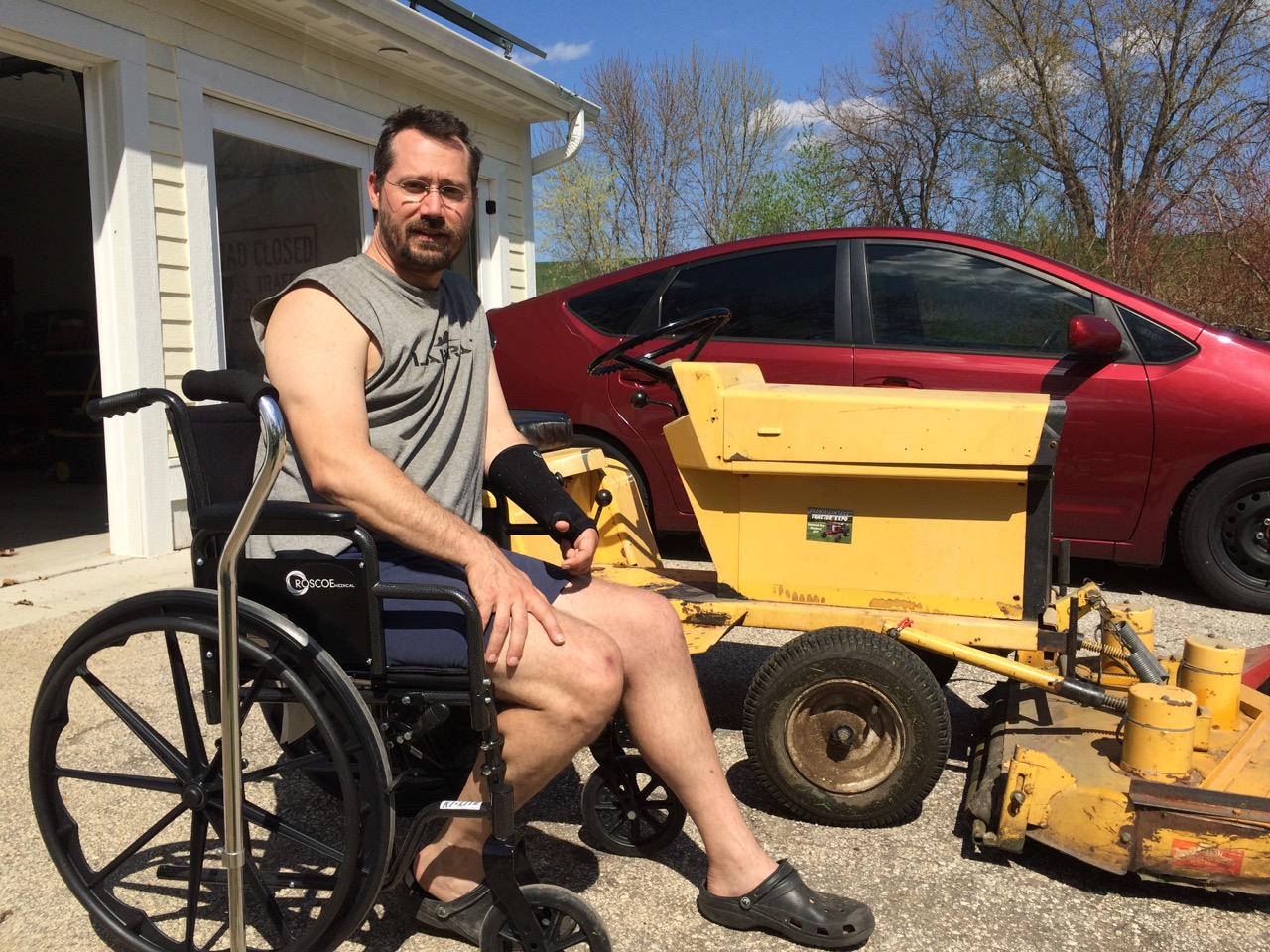 Spring is here, and it’s time for yard work! Unfortunately, I was rather badly hurt some weeks back, including a broken wrist and multiple fractures to the leg. How was I going to do something like mow my lawn!?