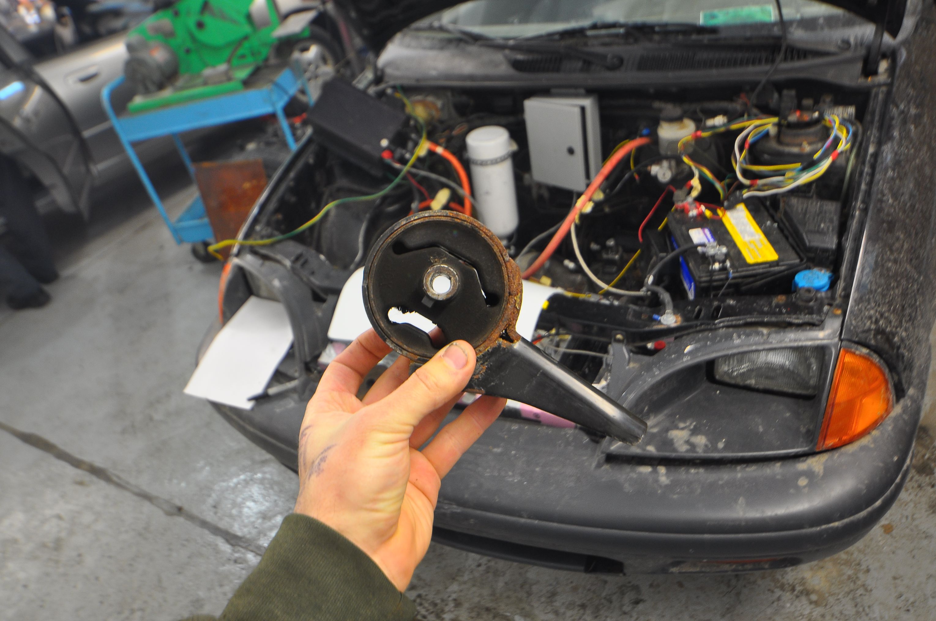 The third mount went to the engine, so it would have to be modified to instead help support the large electric motor.