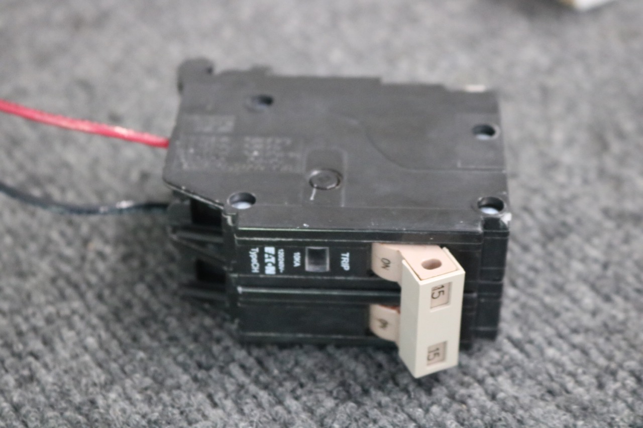 Next, I added a 15A 2-pole breaker to the breaker panel. This supplies the 240V power for the multimeter. I connected two pieces of 14 AWG wiring from the breaker into the 4″ box.