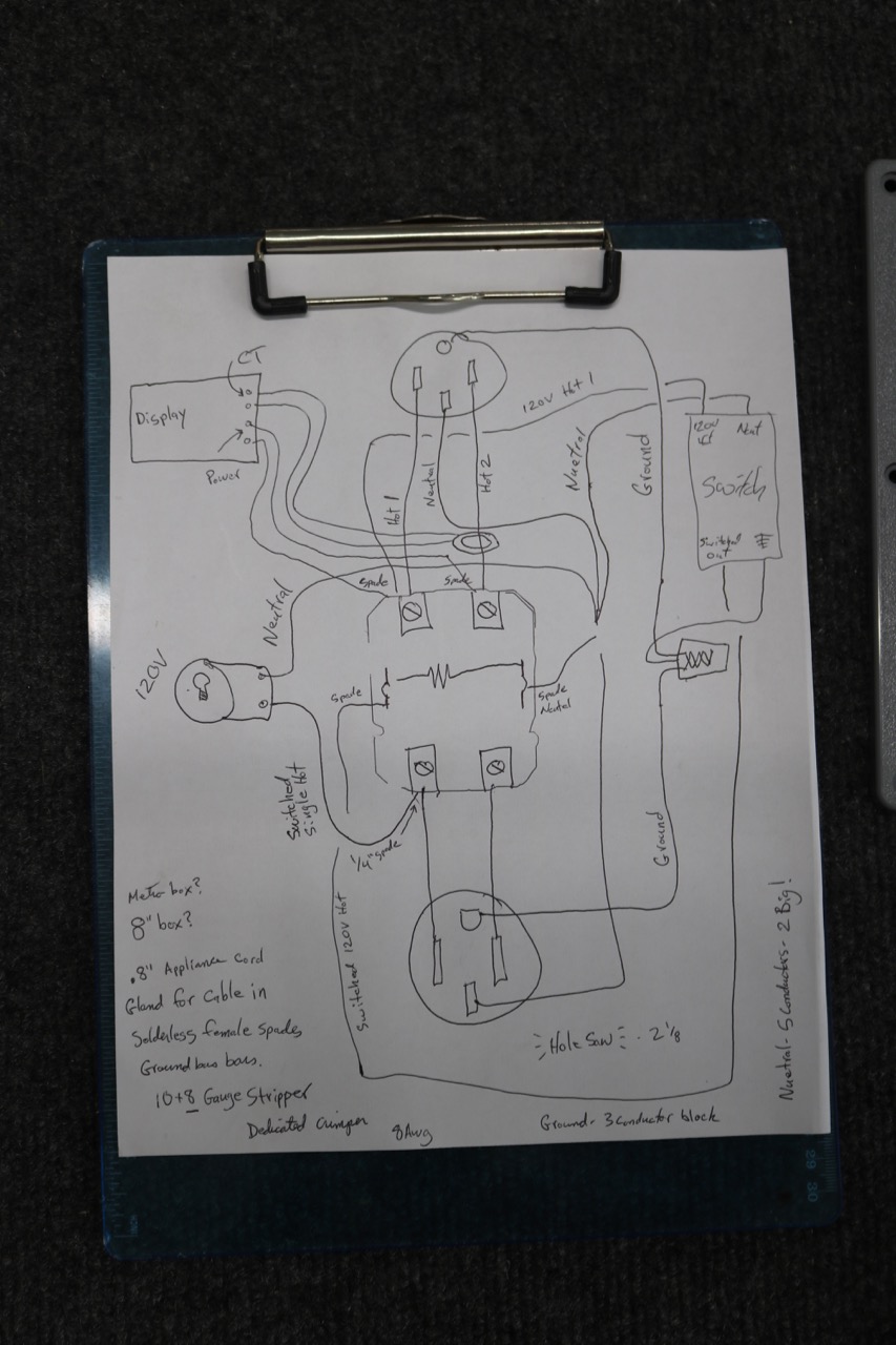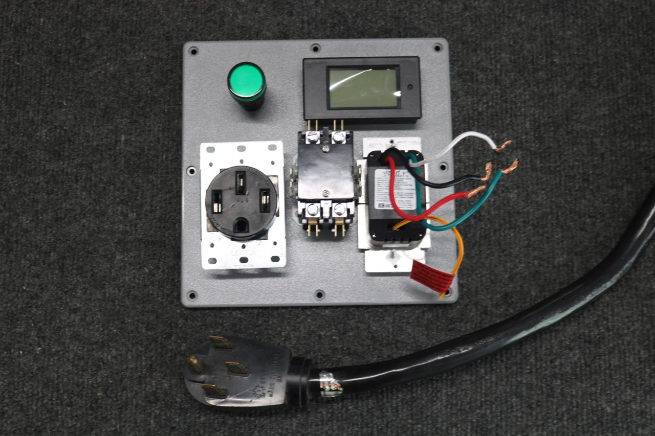I set to work on the project. At it’s heart would be a contactor and a NEMA 14-50 electric outlet. 14-50s are great because they can carry 50 amps and provide 120 AND 240V power. I have several of these electric outlets in my garage and they are also common at RV parks.
