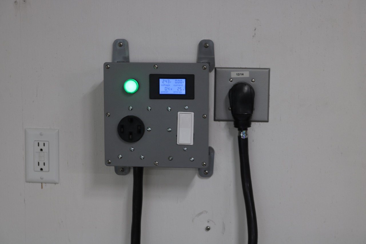 I plugged in the appliance cable to the wall outlet, and my EVSE (Electric car charging cord) into my home automation gadget. The other end of the EVSE plugged into my car.