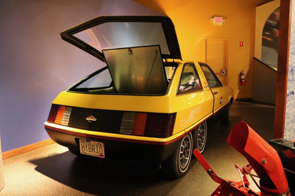 In a back corner of the museum is the Briggs & Stratton Hybrid. The car caught my eye because of the bright yellow color scheme and the fact that it has 6 Wheels! What was even stranger was that I instantly recognized the car! I’ve read articles about it before. About ten years ago, I built my first electric motorcycle using a Briggs & Stratton Etek electric motor. So, I was also researching the company and electric motors at that time.