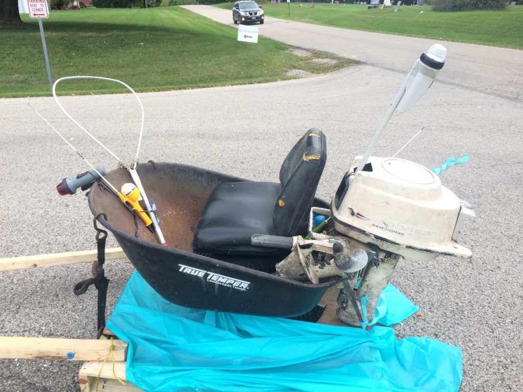 I liked this little boat. I think it was originally a sandbox, mounted on an ATV frame.