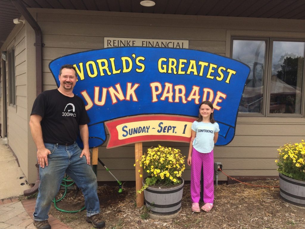 When we made it to the Fireman’s park, we checked in with registration and unloaded. It was fun watching all the other floats come in. One of the best was a full-size pirate ship. (Junk for Sail!) Another was the Zombie Apocalypse Now, featuring a full-scale helicopter and the undead.